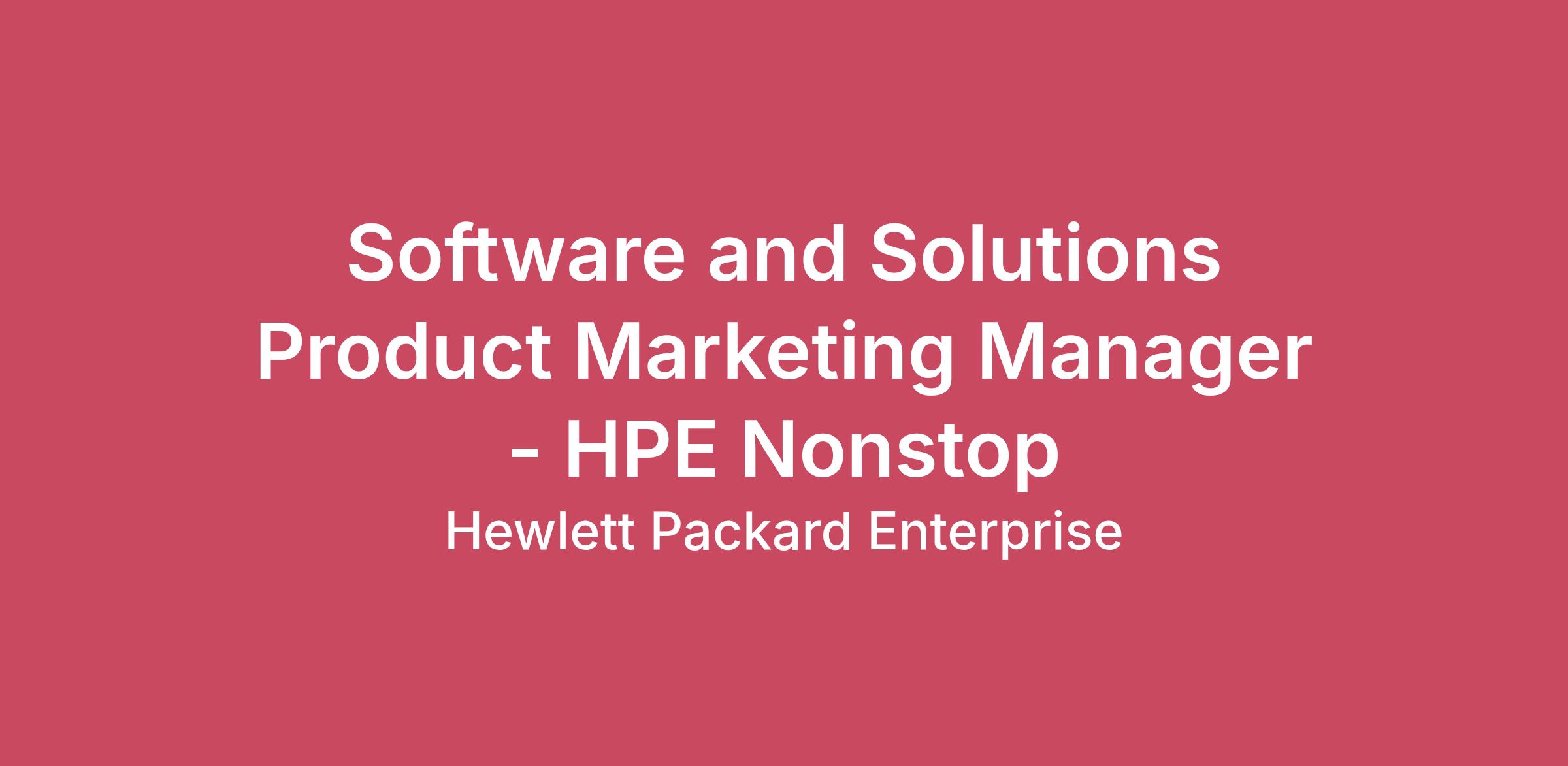 Software and Solutions Product Marketing Manager - HPE Nonstop