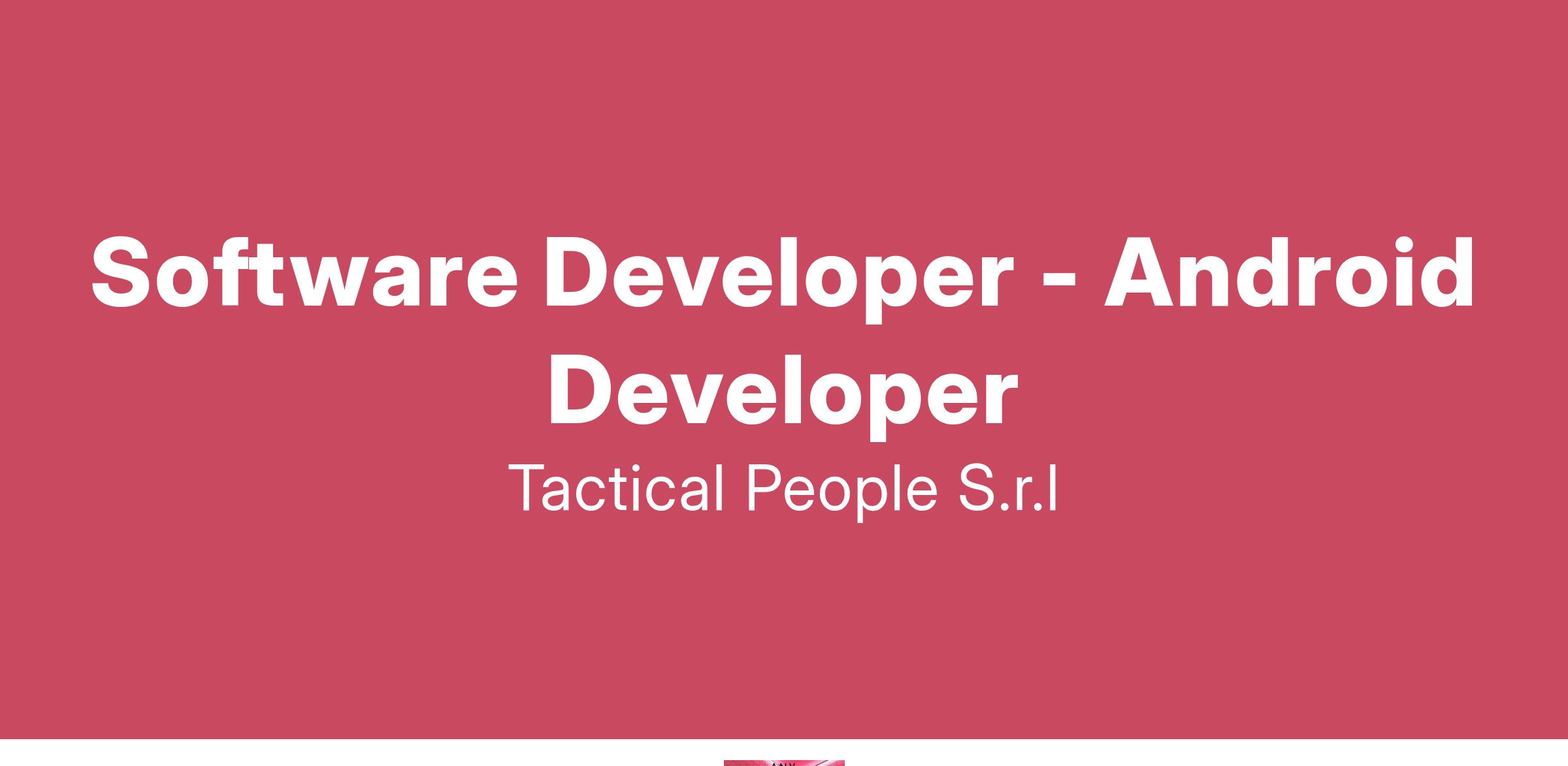 Unisciti a TACTICAL PEOPLE: Innovazione, Persone e Crescita nel Cuore della Digital Transformation Da oltre 20 anni, TACTICAL PEOPLE si posiziona come leader nel mercato ICT, guidando con passione e competenza i nostri clienti di medie e grandi dimensioni attraverso il dinamico percorso della digital transformation. La nostra mission è chiara: non solo abbracciare il cambiamento tecnologico, ma guidarlo, creando soluzioni all'avanguardia che plasmino il futuro digitale. In TACTICAL PEOPLE, crediamo fortemente nel mettere le persone al centro di ogni nostra iniziativa. Le persone sono il cuore pulsante della nostra azienda; il loro benessere, la loro crescita e il loro sviluppo sono la nostra priorità. Ci impegniamo a condividere le strategie aziendali con trasparenza e a fornire formazione e supporto a ogni livello, garantendo che ogni membro del team sia equipaggiato per eccellere e innovare. Stiamo cercando individui che condividano la nostra visione, che siano guidati dalla passione per la tecnologia e che desiderino essere protagonisti nella costruzione di un futuro digitale più luminoso. Se sei pronto a far parte di una squadra che valorizza il talento, incoraggia la crescita personale e professionale e lavora in prima linea nel settore della digital transformation, TACTICAL PEOPLE è il posto giusto per te. Posizione Aperta: Software Developer - Android Developer Sede: Remoto Descrizione del Ruolo: Siamo alla ricerca di un Android Developer con esperienza. Il candidato ideale sarà responsabile dello sviluppo e della manutenzione di applicazioni per dispositivi mobili basati su tecnologia Android, contribuendo alla definizione delle architetture in conformità con le linee guida di Google. Cosa offriamo: Inserimento immediato in una Tech Community giovane e dinamica. TACTICAL LEARNING HUB, con corsi di aggiornamento e formazione. Il presente annuncio è rivolto ad entrambi i sessi, ai sensi delle leggi 903/77 e 125/91, e a persone di tutte le età e tutte le nazionalità, ai sensi dei decreti legislativi 215/03 e 216/03. I curricula dovranno pervenire completi di dicitura che autorizza il trattamento dei propri dati: “Si autorizza al trattamento dei dati personali ai sensi del D. Lgs. 196/2003.