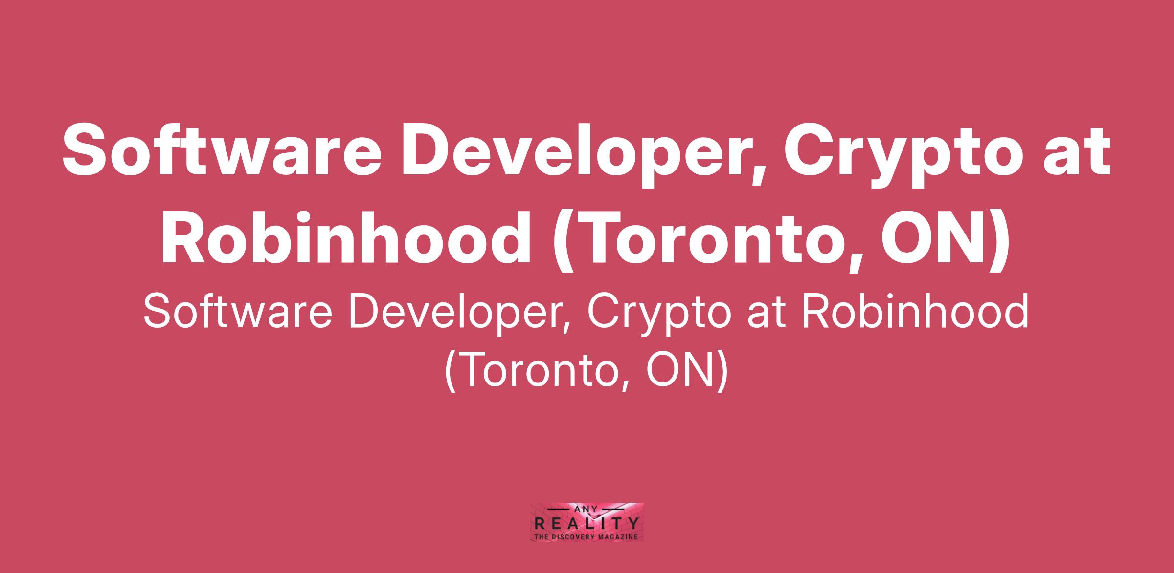 Software Developer, Crypto at Robinhood (Toronto, ON)