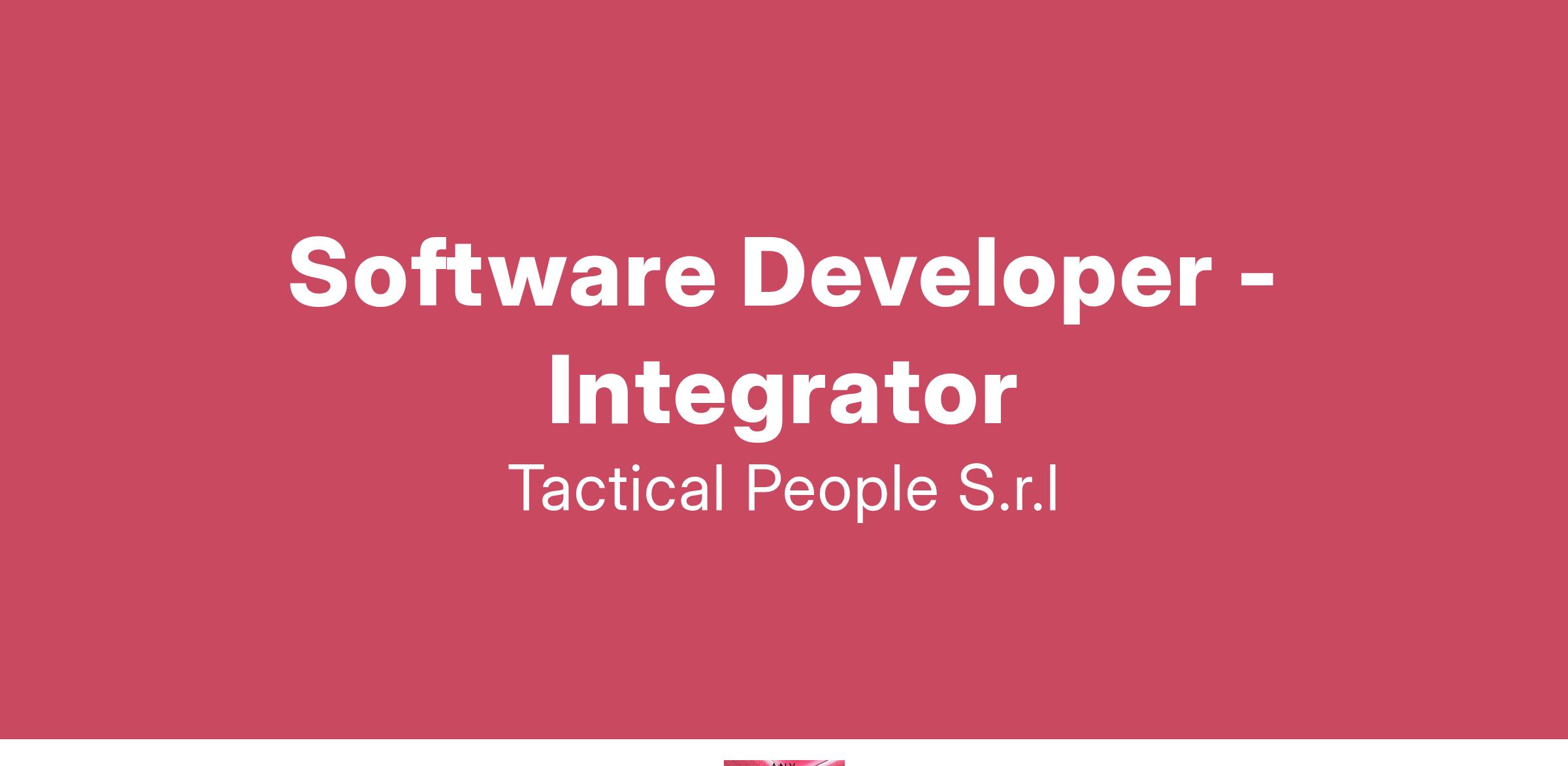 Unisciti a TACTICAL PEOPLE: Innovazione, Persone e Crescita nel Cuore della Digital Transformation Da oltre 20 anni, TACTICAL PEOPLE si posiziona come leader nel mercato ICT, guidando con passione e competenza i nostri clienti di medie e grandi dimensioni attraverso il dinamico percorso della digital transformation. La nostra mission è chiara: non solo abbracciare il cambiamento tecnologico, ma guidarlo, creando soluzioni all'avanguardia che plasmino il futuro digitale. In TACTICAL PEOPLE, crediamo fortemente nel mettere le persone al centro di ogni nostra iniziativa. Le persone sono il cuore pulsante della nostra azienda; il loro benessere, la loro crescita e il loro sviluppo sono la nostra priorità. Ci impegniamo a condividere le strategie aziendali con trasparenza e a fornire formazione e supporto a ogni livello, garantendo che ogni membro del team sia equipaggiato per eccellere e innovare. Stiamo cercando individui che condividano la nostra visione, che siano guidati dalla passione per la tecnologia e che desiderino essere protagonisti nella costruzione di un futuro digitale più luminoso. Se sei pronto a far parte di una squadra che valorizza il talento, incoraggia la crescita personale e professionale e lavora in prima linea nel settore della digital transformation, TACTICAL PEOPLE è il posto giusto per te. Posizione Aperta: Software Developer - Integrator Sede: Remoto Descrizione del ruolo: Il candidato ideale deve avere più di 5 anni di esperienza nel ruolo. Cosa offriamo: Inserimento immediato in una Tech Community giovane e dinamica. TACTICAL LEARNING HUB, con corsi di aggiornamento e formazione. Il presente annuncio è rivolto ad entrambi i sessi, ai sensi delle leggi 903/77 e 125/91, e a persone di tutte le età e tutte le nazionalità, ai sensi dei decreti legislativi 215/03 e 216/03. I curricula dovranno pervenire completi di dicitura che autorizza il trattamento dei propri dati: “Si autorizza al trattamento dei dati personali ai sensi del D. Lgs. 196/2003.