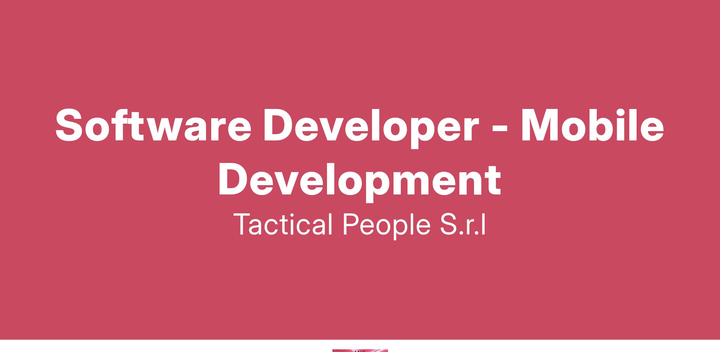 Unisciti a TACTICAL PEOPLE: Innovazione, Persone e Crescita nel Cuore della Digital Transformation Da oltre 20 anni, TACTICAL PEOPLE si posiziona come leader nel mercato ICT, guidando con passione e competenza i nostri clienti di medie e grandi dimensioni attraverso il dinamico percorso della digital transformation. La nostra mission è chiara: non solo abbracciare il cambiamento tecnologico, ma guidarlo, creando soluzioni all'avanguardia che plasmino il futuro digitale. In TACTICAL PEOPLE, crediamo fortemente nel mettere le persone al centro di ogni nostra iniziativa. Le persone sono il cuore pulsante della nostra azienda; il loro benessere, la loro crescita e il loro sviluppo sono la nostra priorità. Ci impegniamo a condividere le strategie aziendali con trasparenza e a fornire formazione e supporto a ogni livello, garantendo che ogni membro del team sia equipaggiato per eccellere e innovare. Stiamo cercando individui che condividano la nostra visione, che siano guidati dalla passione per la tecnologia e che desiderino essere protagonisti nella costruzione di un futuro digitale più luminoso. Se sei pronto a far parte di una squadra che valorizza il talento, incoraggia la crescita personale e professionale e lavora in prima linea nel settore della digital transformation, TACTICAL PEOPLE è il posto giusto per te. Posizione Aperta: Software Developer - Mobile Development Sede: Torino Descrizione del ruolo: il candidato ideale deve avere almeno 3-5 anni di esperienza nello sviluppo di applicazioni Android e Android TV, con competenze avanzate su linguaggi di programmazione come Java, Kotlin e preferibilmente C/C++. Cosa offriamo: Inserimento immediato in una Tech Community giovane e dinamica. TACTICAL LEARNING HUB, con corsi di aggiornamento e formazione. Il presente annuncio è rivolto ad entrambi i sessi, ai sensi delle leggi 903/77 e 125/91, e a persone di tutte le età e tutte le nazionalità, ai sensi dei decreti legislativi 215/03 e 216/03. I curricula dovranno pervenire completi di dicitura che autorizza il trattamento dei propri dati: “Si autorizza al trattamento dei dati personali ai sensi del D. Lgs. 196/2003.