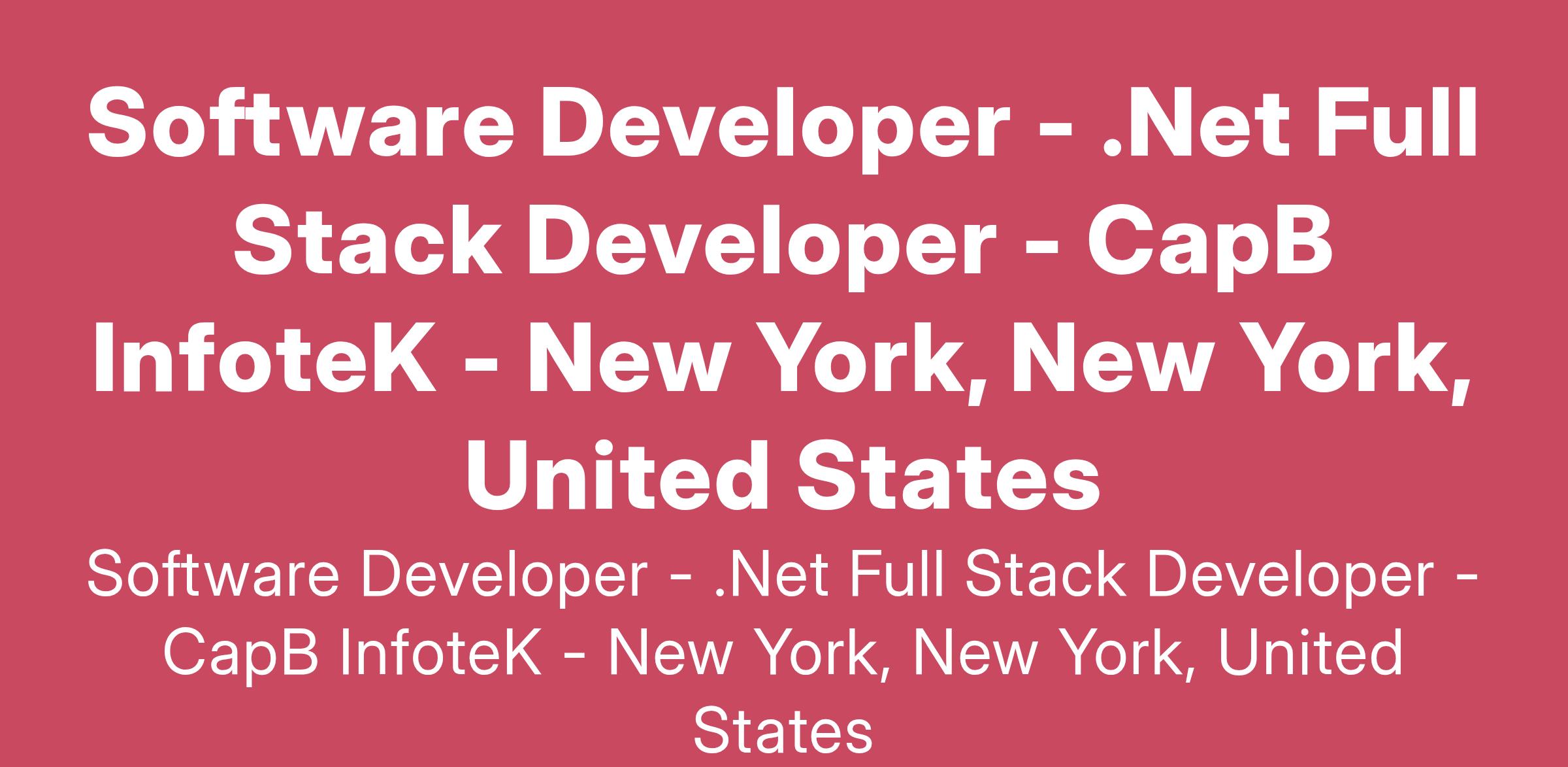 For one of our going on project we are looking for Software Developer - .Net Full Stack Developer. The position is based out of New York, NY.