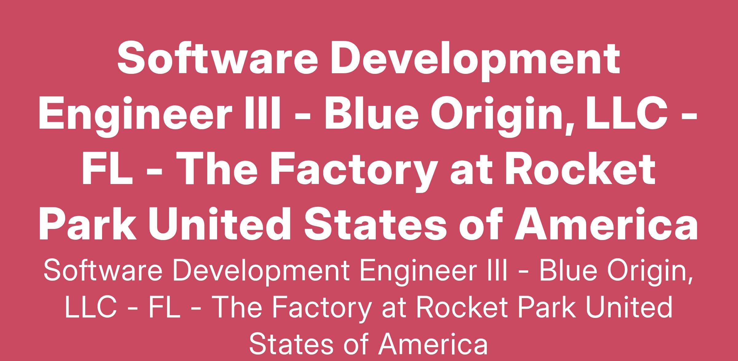 We are a diverse team of collaborators, doers, and problem-solvers who are relentlessly committed to a culture of safety. This position will directly impact the history of space exploration and will require your commitment and detailed attention towards safe and repeatable space flight. Join us in lowering the cost of access to space and enabling Blue Origin’s vision of millions of people living and working in space to benefit Earth.