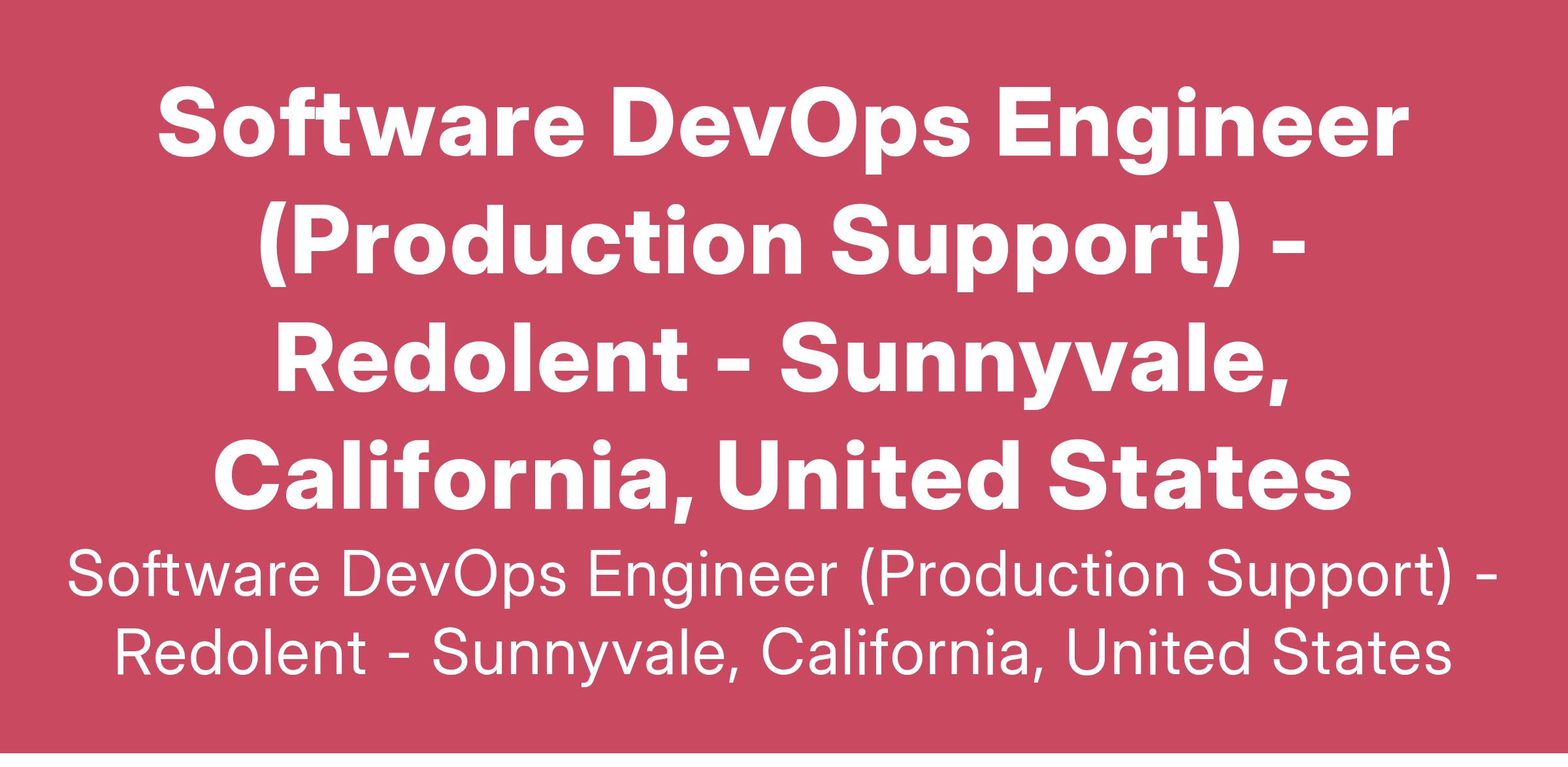 Software DevOps Engineer (Production Support) - Redolent - Sunnyvale, California, United States