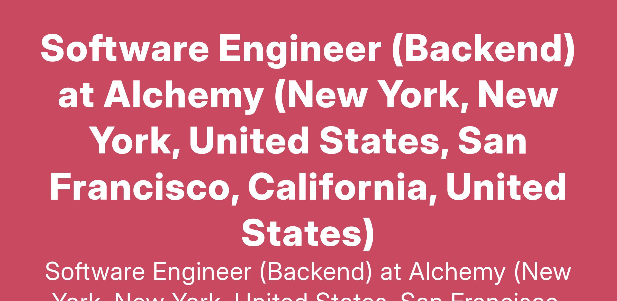 Software Engineer (Backend) at Alchemy (New York, New York, United States, San Francisco, California, United States)