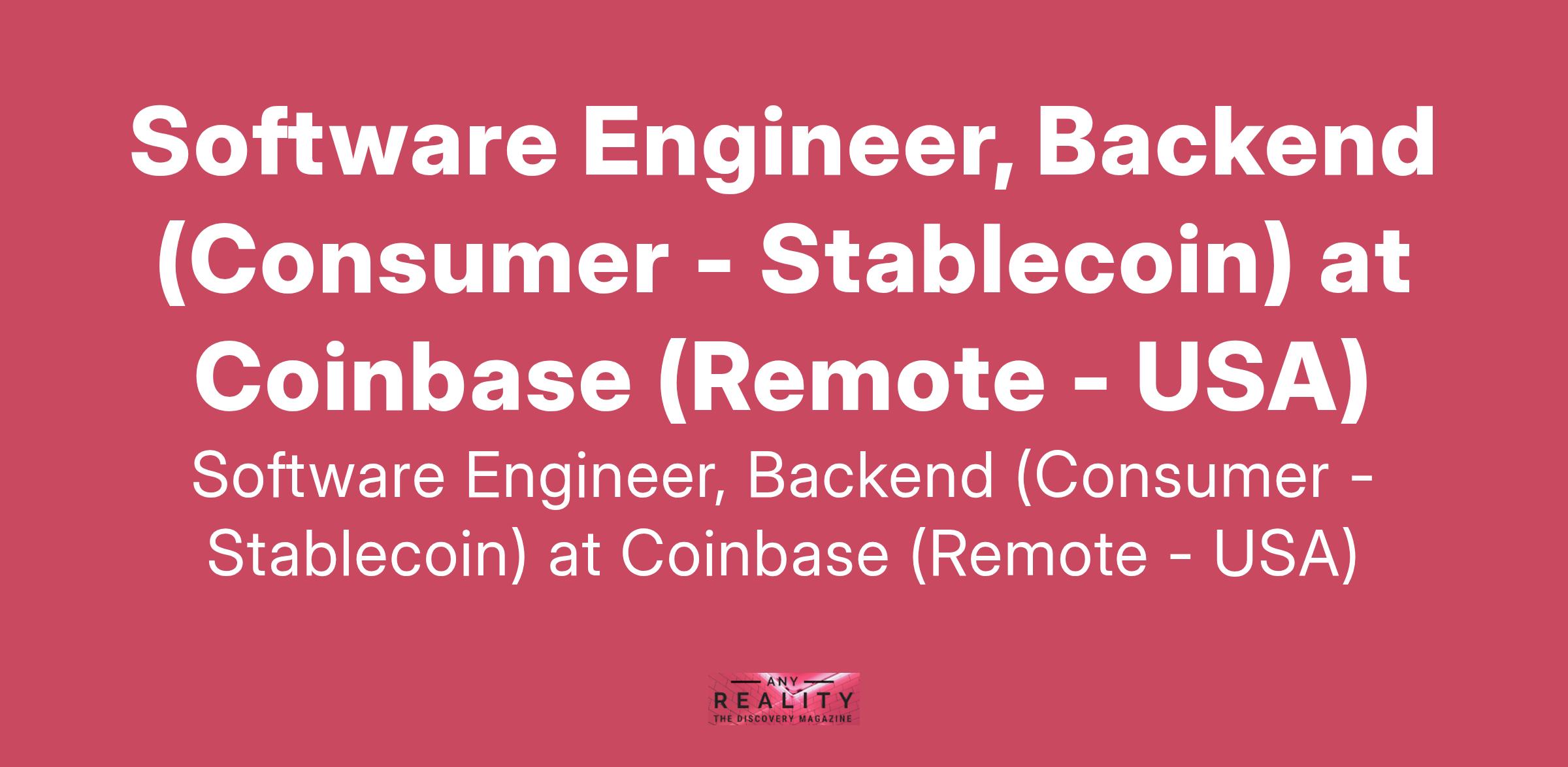 Software Engineer, Backend (Consumer - Stablecoin) at Coinbase (Remote - USA)