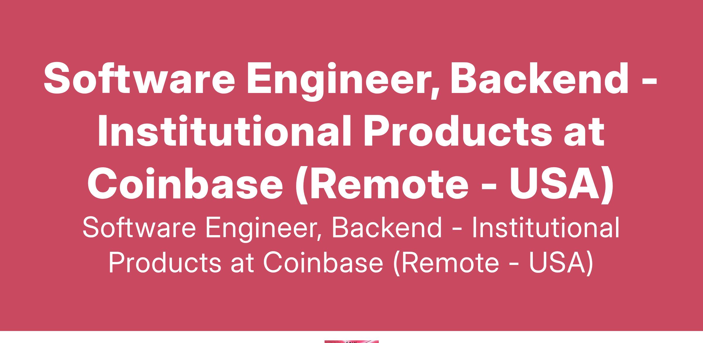 Software Engineer, Backend - Institutional Products at Coinbase (Remote - USA)