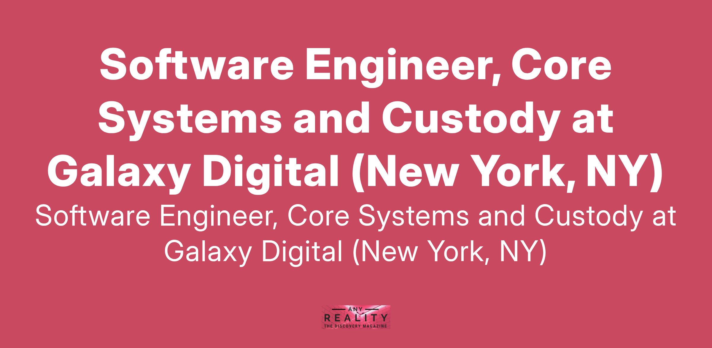 Software Engineer, Core Systems and Custody at Galaxy Digital (New York, NY)