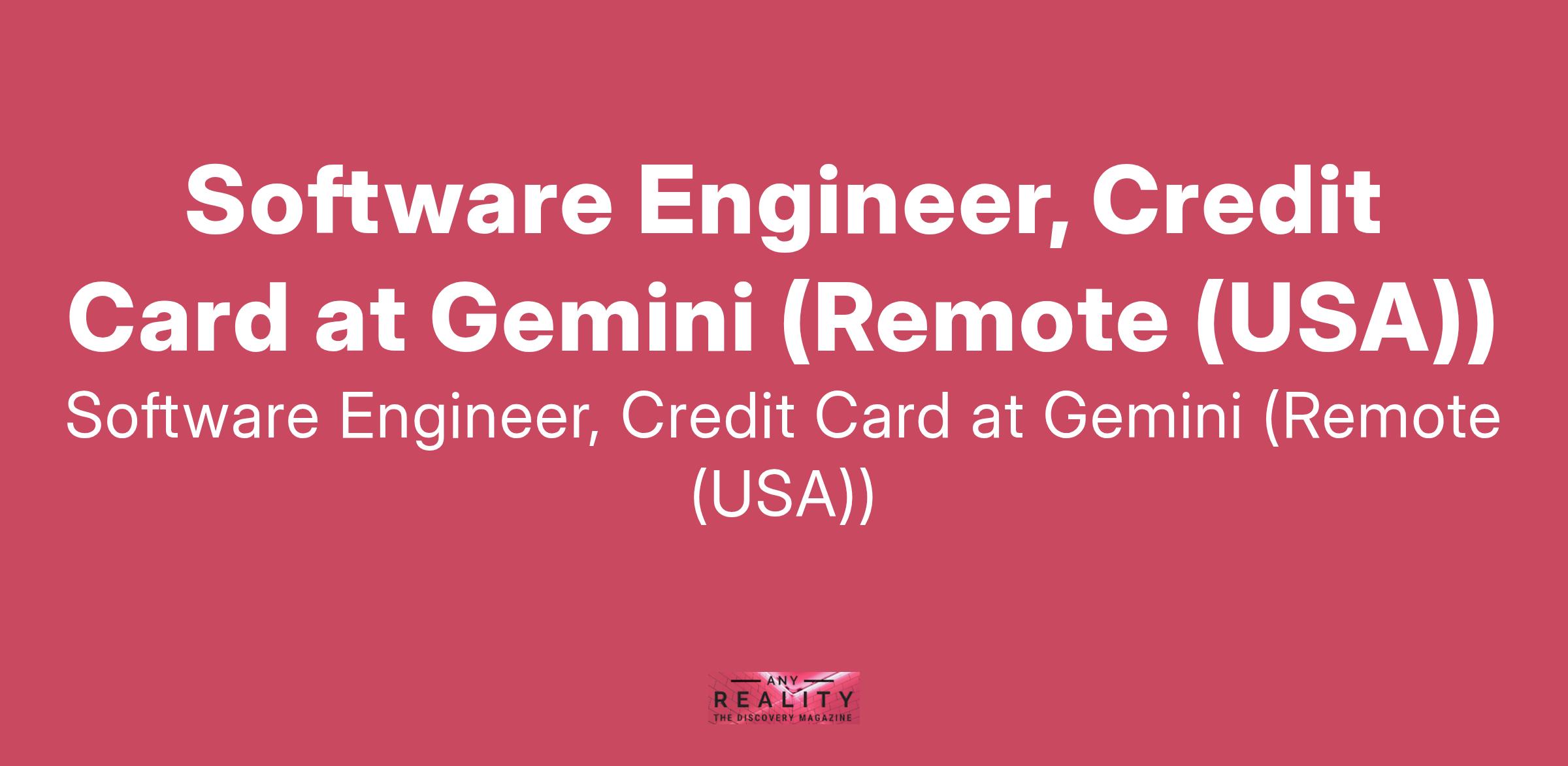 Software Engineer, Credit Card at Gemini (Remote (USA))