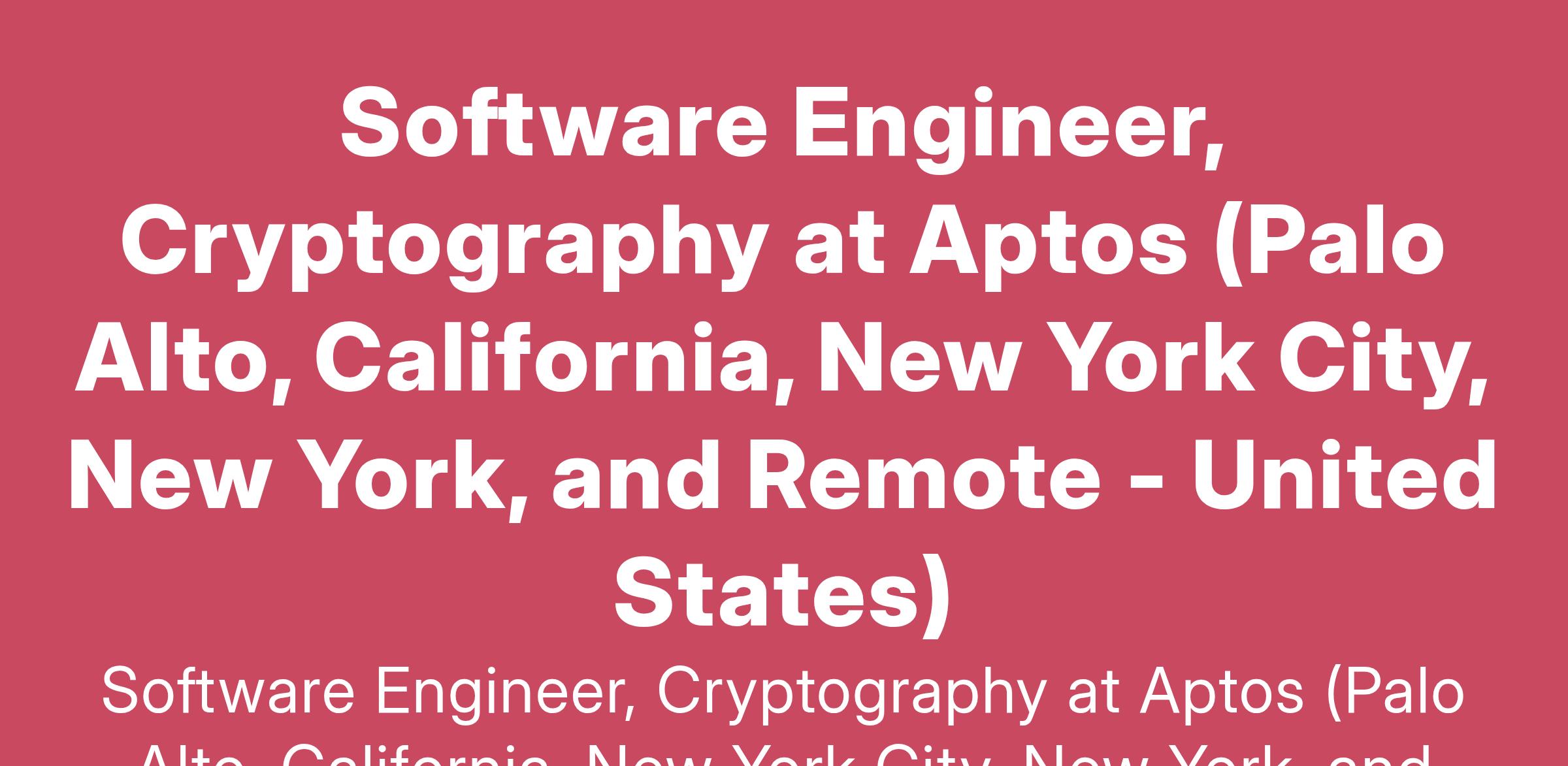 Software Engineer, Cryptography at Aptos (Palo Alto, California, New York City, New York, and Remote - United States)
