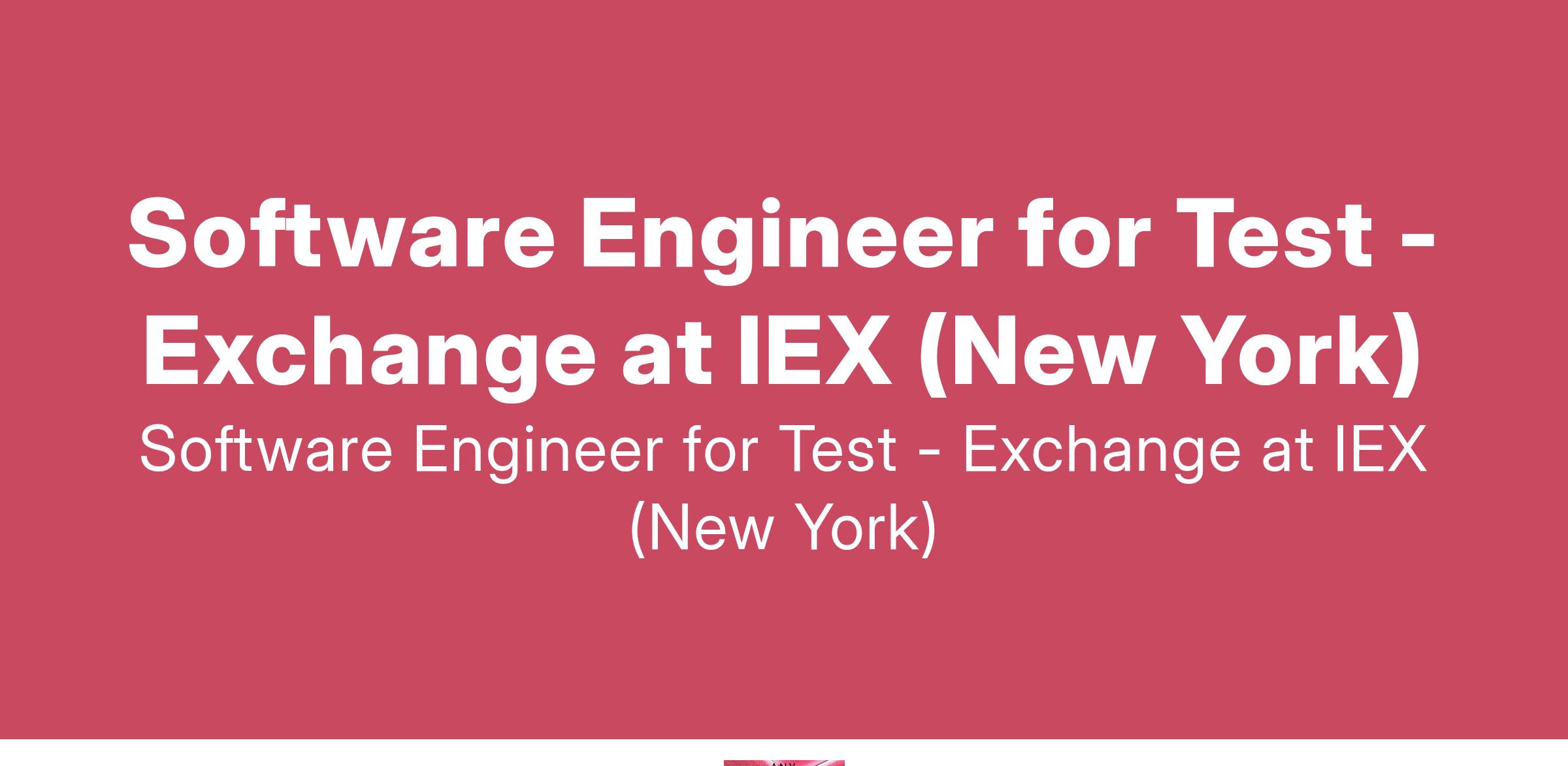Software Engineer for Test - Exchange at IEX (New York)