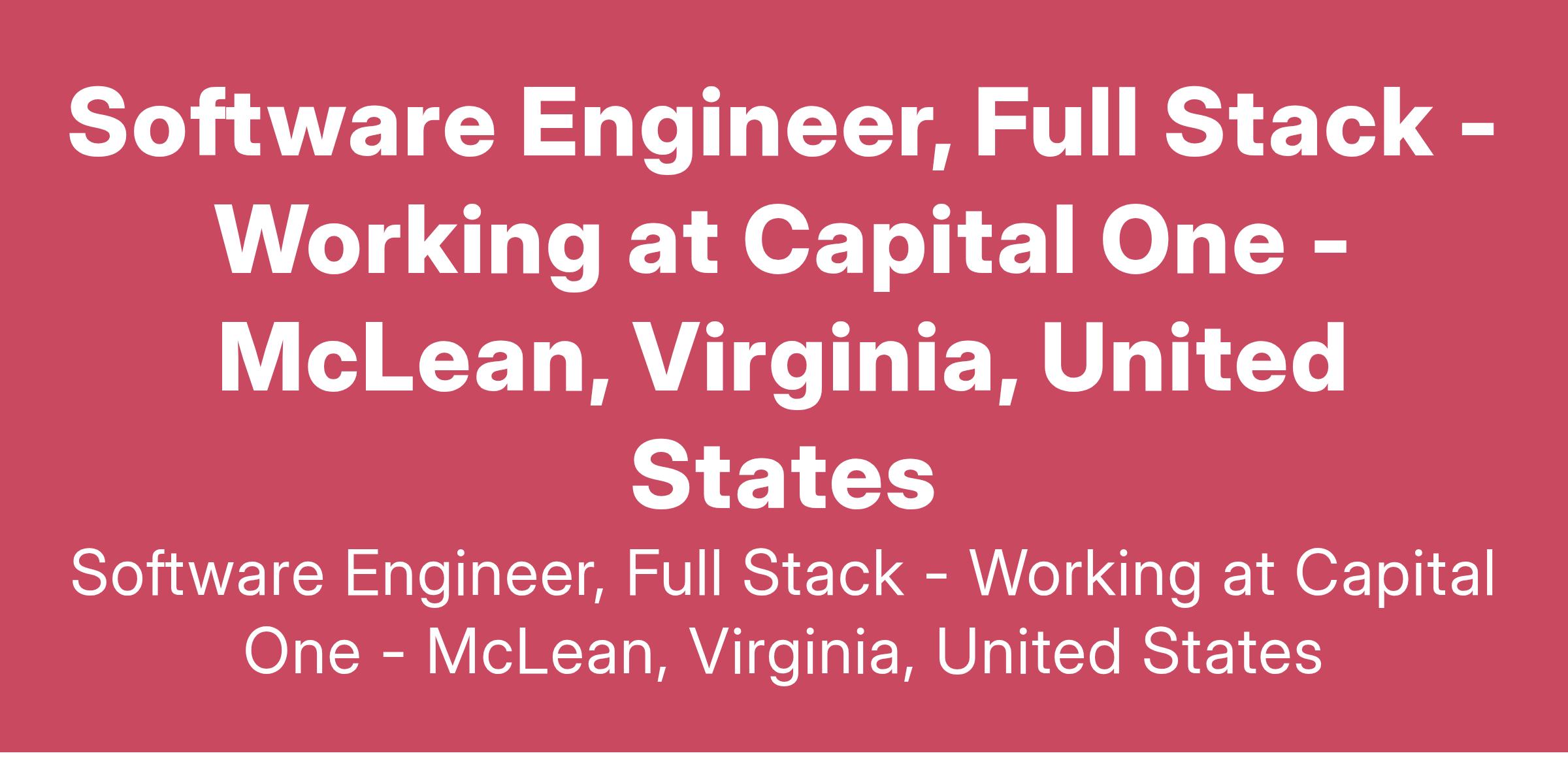 This role is expected to accept applications for a minimum of 5 business days.No agencies please. Capital One is an equal opportunity employer committed to diversity and inclusion in the workplace. All qualified applicants will receive consideration for employment without regard to sex (including pregnancy, childbirth or related medical conditions), race, color, age, national origin, religion, disability, genetic information, marital status, sexual orientation, gender identity, gender reassignment, citizenship, immigration status, protected veteran status, or any other basis prohibited under applicable federal, state or local law. Capital One promotes a drug-free workplace. Capital One will consider for employment qualified applicants with a criminal history in a manner consistent with the requirements of applicable laws regarding criminal background inquiries, including, to the extent applicable, Article 23-A of the New York Correction Law; San Francisco, California Police Code Article 49, Sections 4901-4920; New York City’s Fair Chance Act; Philadelphia’s Fair Criminal Records Screening Act; and other applicable federal, state, and local laws and regulations regarding criminal background inquiries.If you have visited our website in search of information on employment opportunities or to apply for a position, and you require an accommodation, please contact Capital One Recruiting at 1-800-304-9102 or via email at RecruitingAccommodation@capitalone.com. All information you provide will be kept confidential and will be used only to the extent required to provide needed reasonable accommodations.