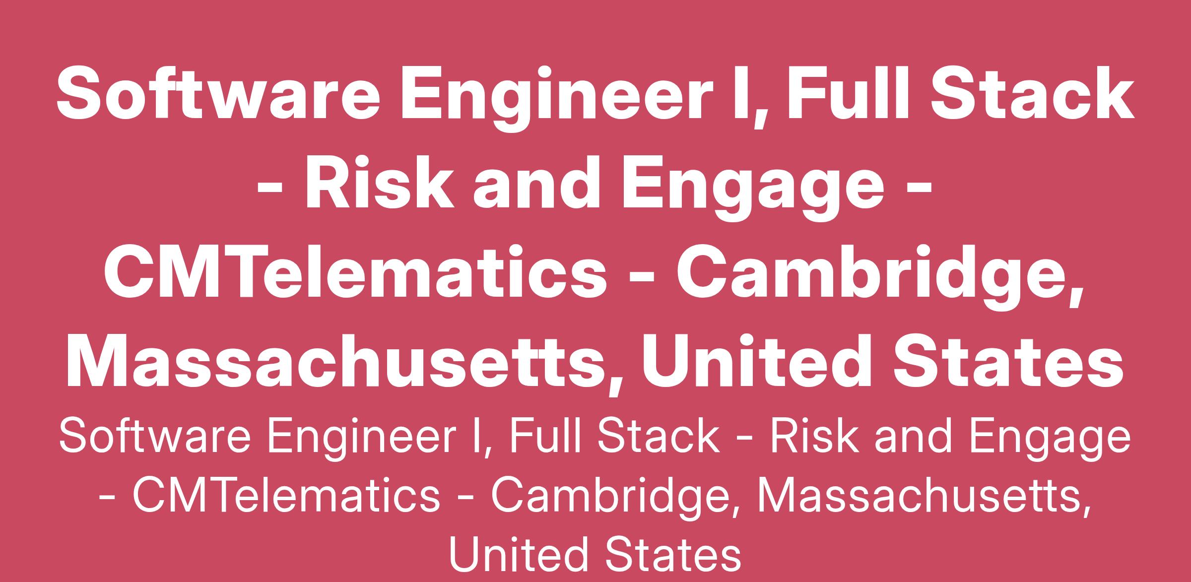 We do not discriminate based on race, religion, color, national origin, gender, sexual orientation, age, marital status, veteran status or disability state. “CMT is headquartered in Cambridge, MA. “To learn more, visit www.cmtelematics.com and follow us on X @cmtelematics.”