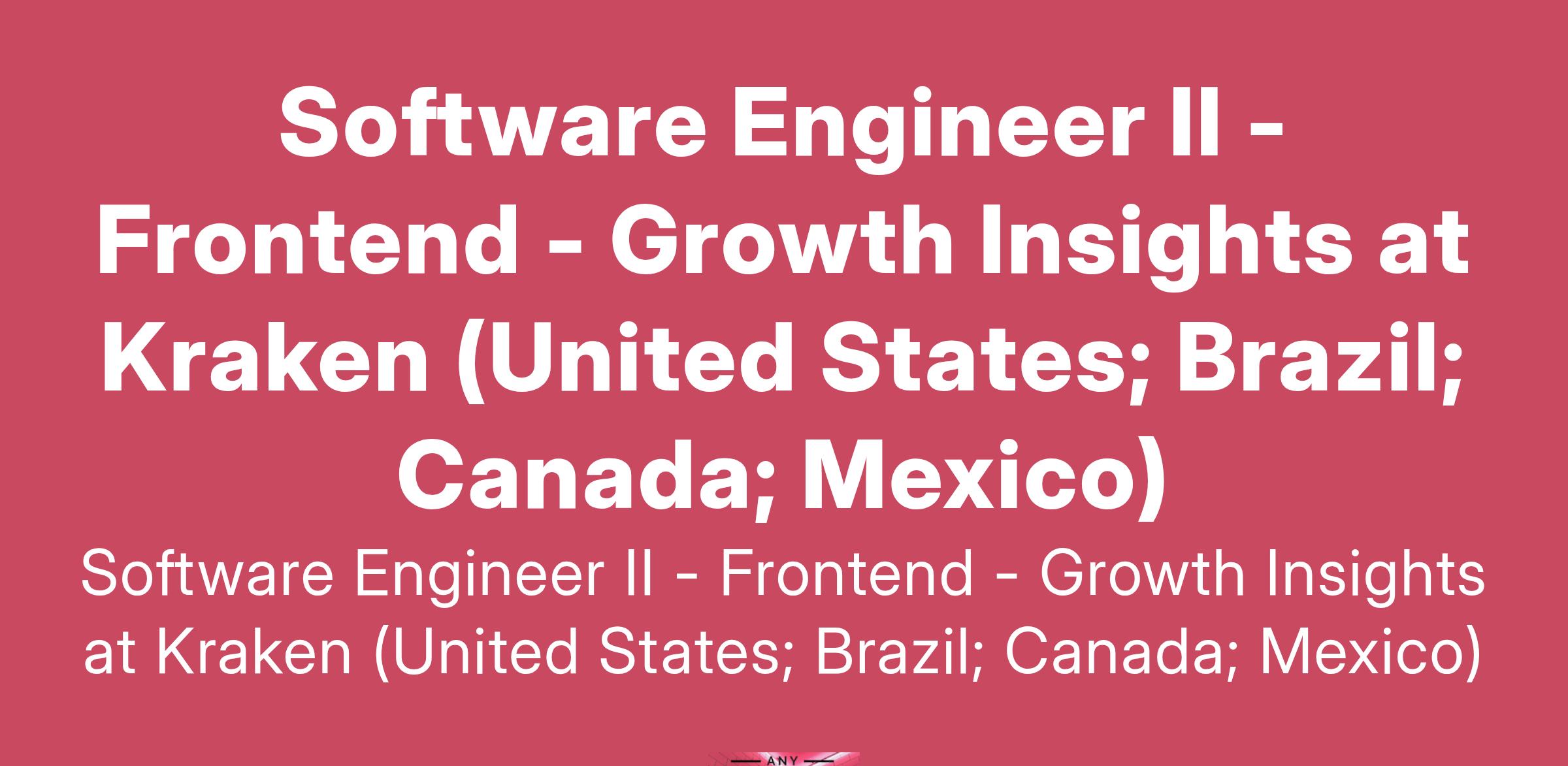 Software Engineer II - Frontend - Growth Insights at Kraken (United States; Brazil; Canada; Mexico)
