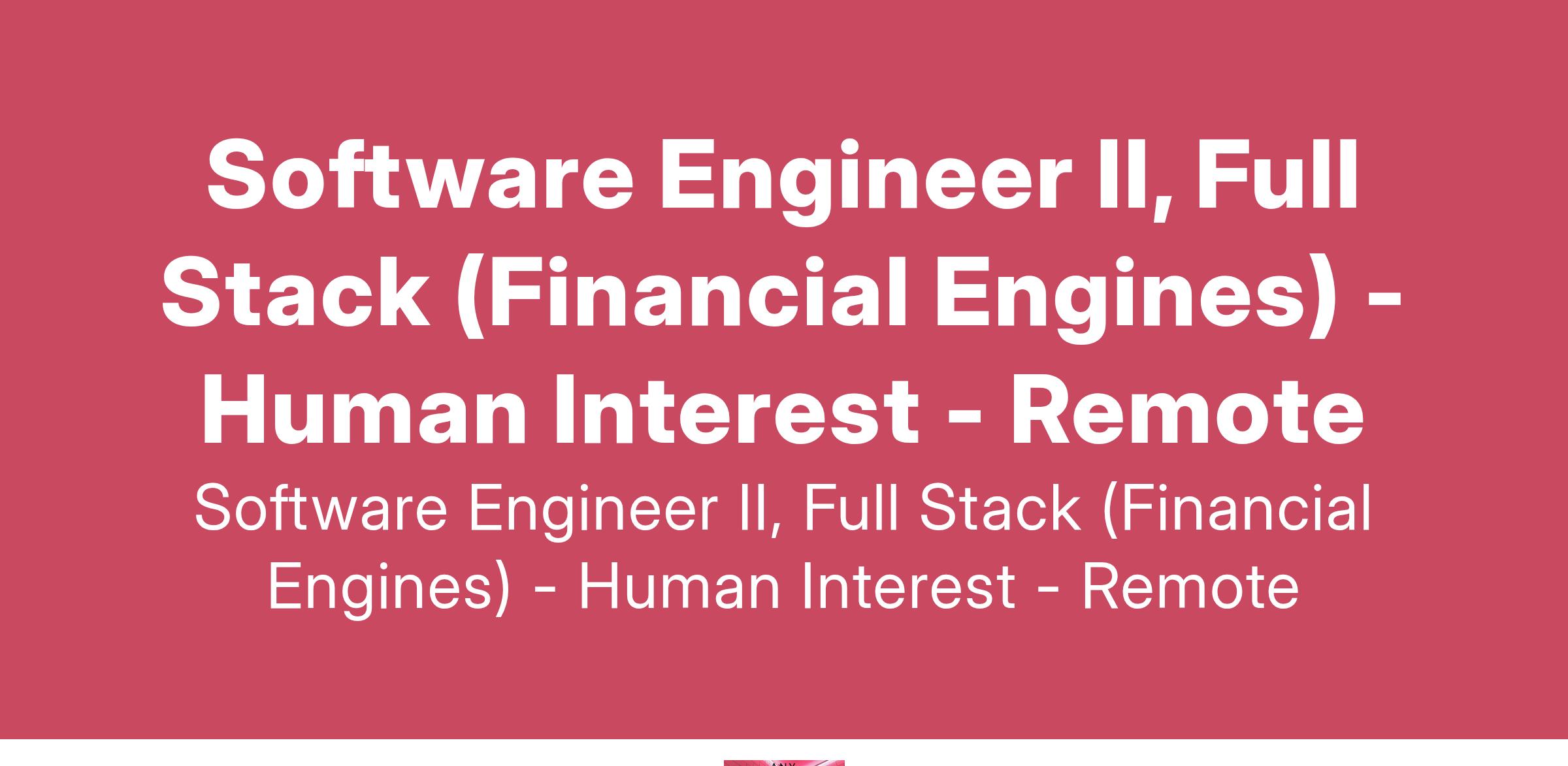 Human Interest is an equal opportunity employer. All applicants will receive consideration for employment without regard to race, color, religion, sex, gender, gender identity or expression, sexual orientation, national origin, genetics, disability, age, veteran or military status, pregnancy, or any other characteristics protected under federal, state, or local laws.