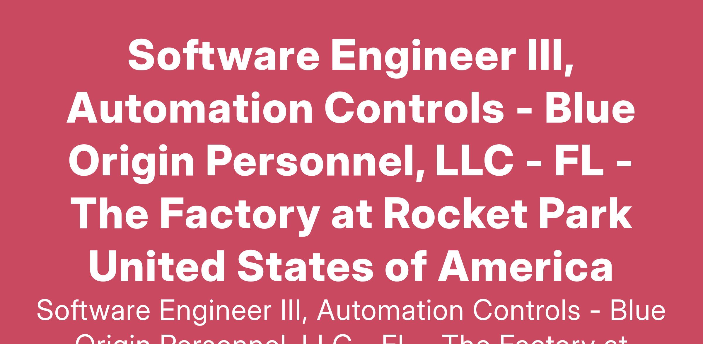 Software Engineer III, Automation Controls - Blue Origin Personnel, LLC - FL - The Factory at Rocket Park United States of America