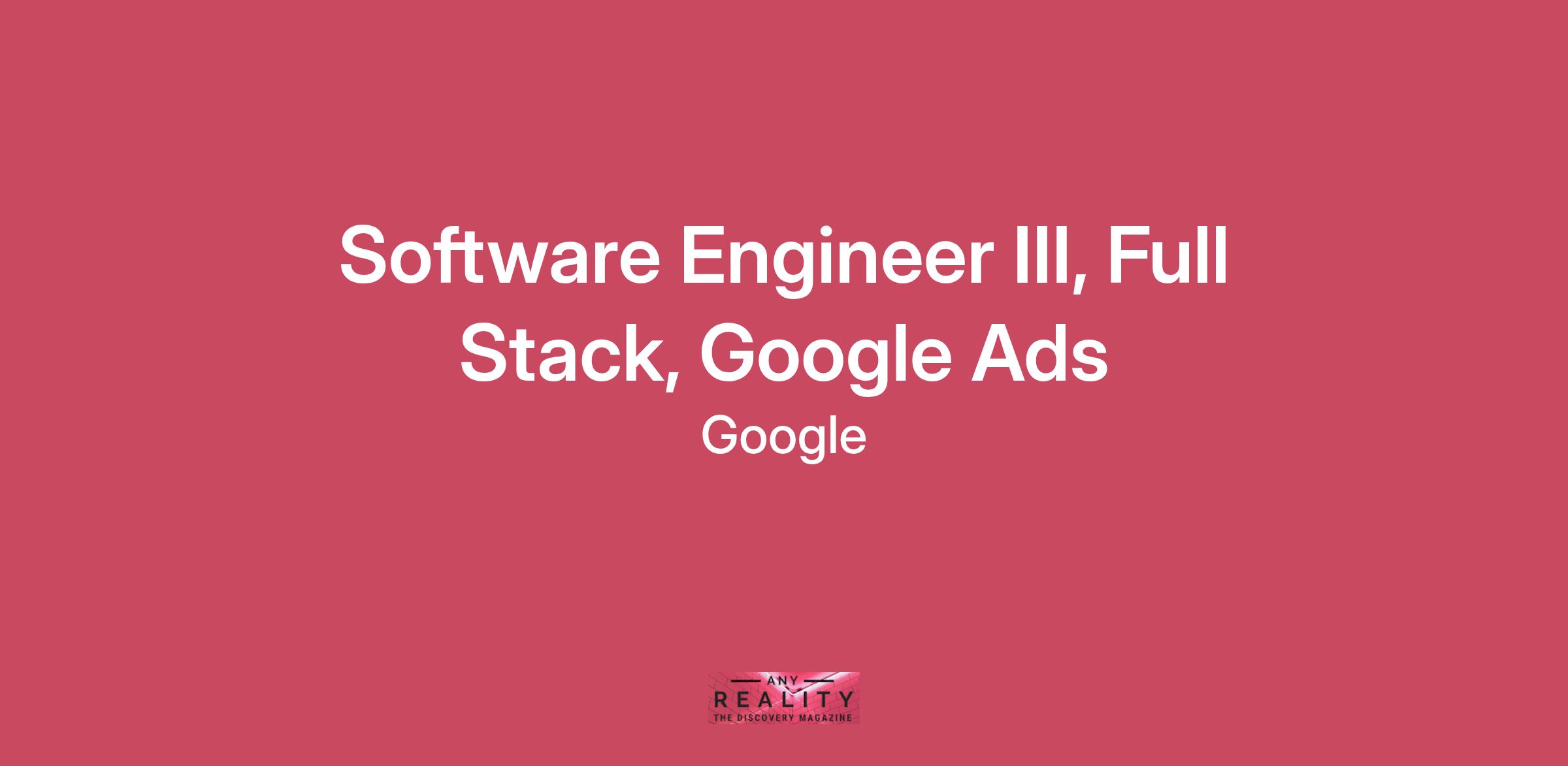 Software Engineer III, Full Stack, Google Ads
