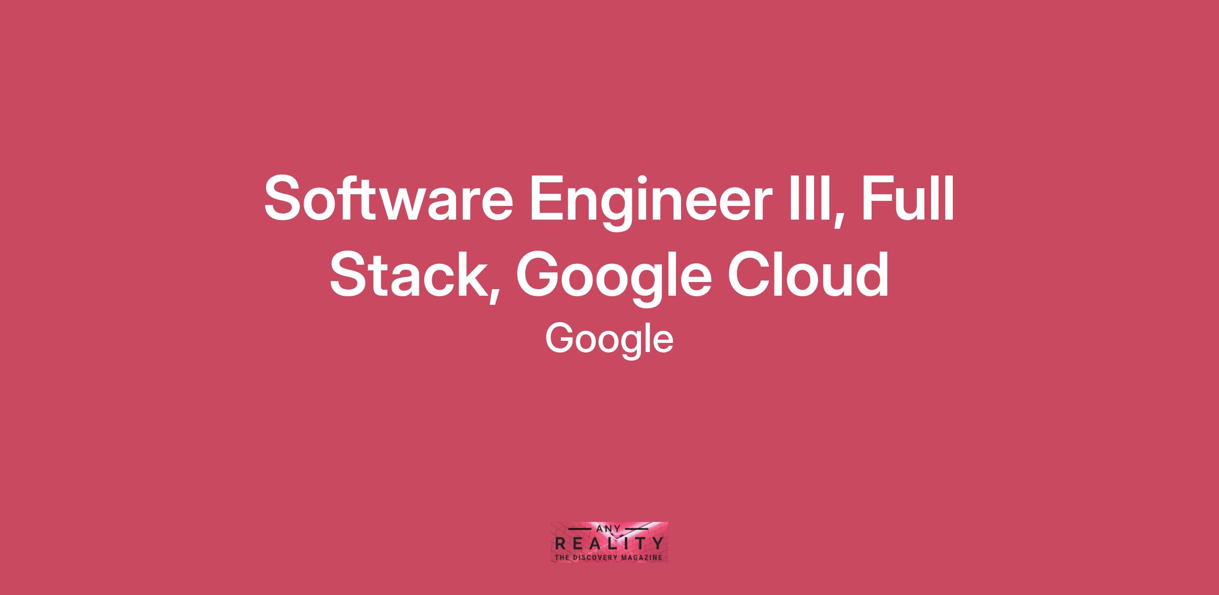 Software Engineer III, Full Stack, Google Cloud