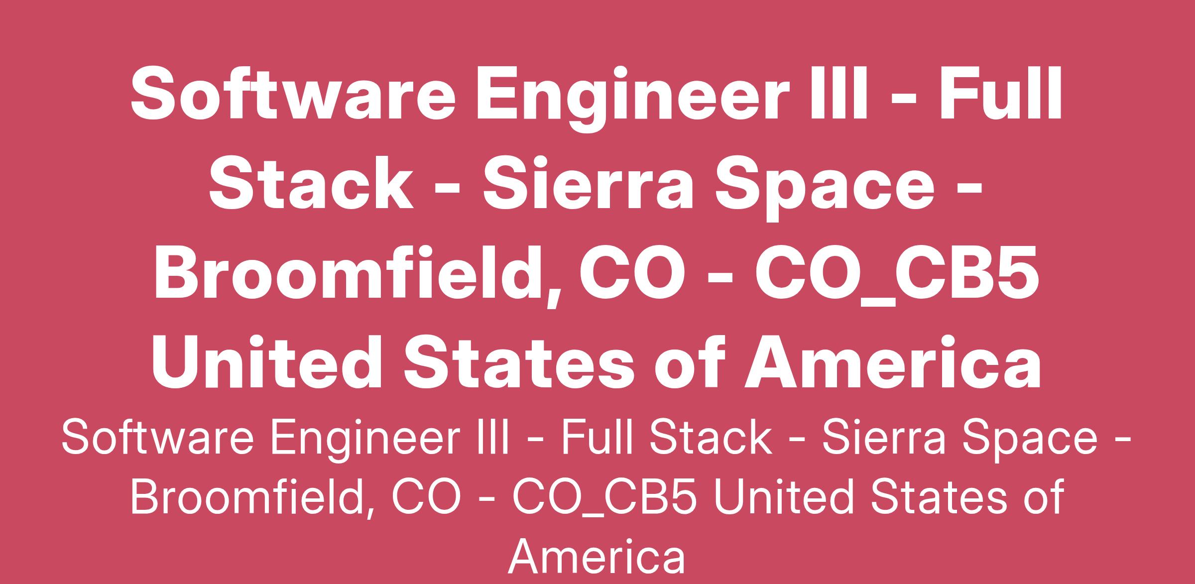 Sierra Space Corporation is an equal opportunity employer and is committed to working with and providing reasonable accommodations to applicants with disabilities. If you need special assistance or a reasonable accommodation related to applying for employment with Sierra Space or at any stage of the recruitment process, please contact us.