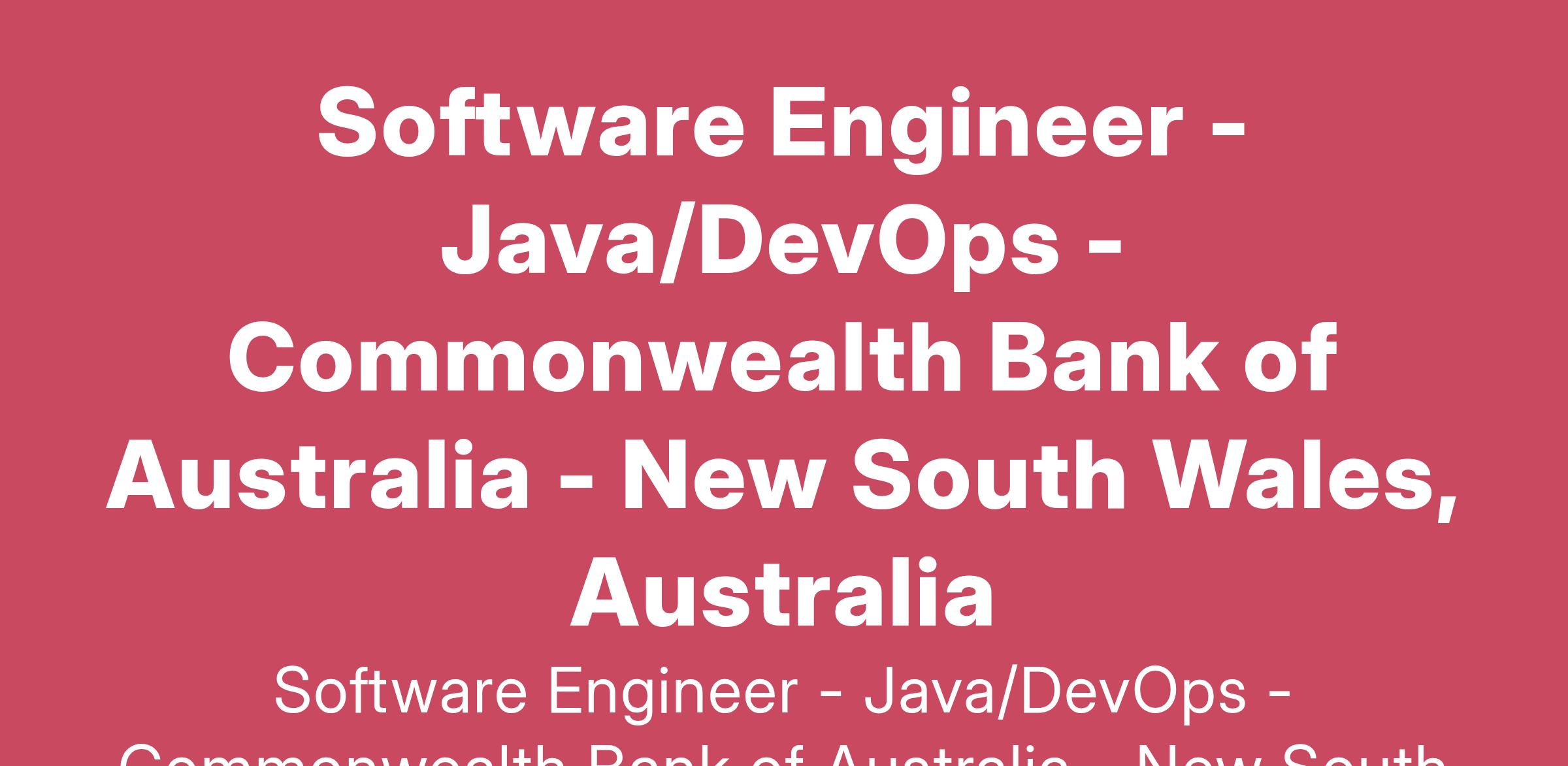 We are building a data platform for Bank’s key customer engagement platforms including NetBank and CommBank App. Our platform has provided many real-time capabilities to enhance the financial well-being of our customers. We are going to take our data platform into the next level. It will be something better, something smarter! You will be joining a DevOps team with talented software engineers in the Consumer Digital Platform team, which is responsible for designing, building and maintaining the data platform.