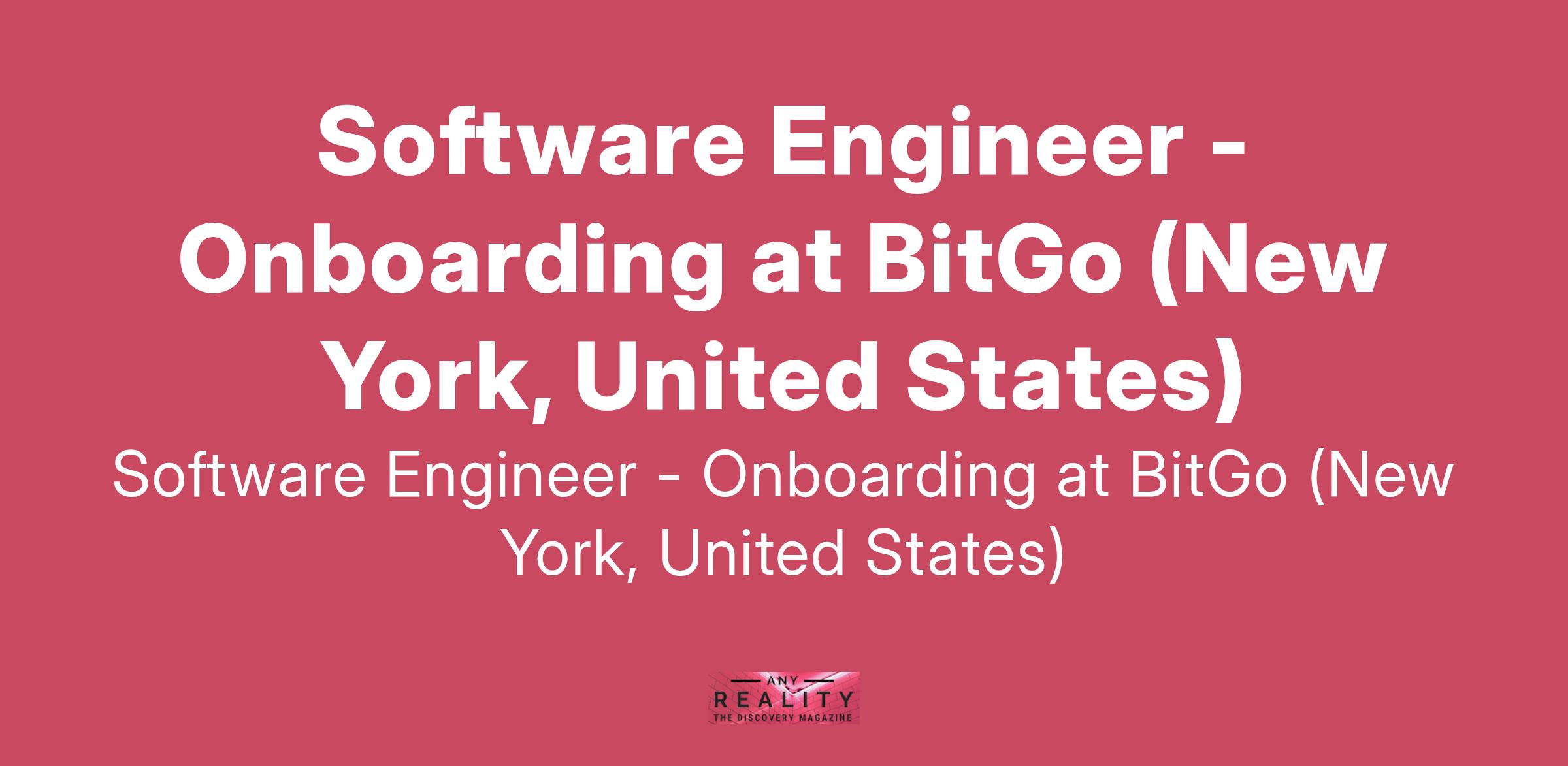 Software Engineer - Onboarding at BitGo (New York, United States)