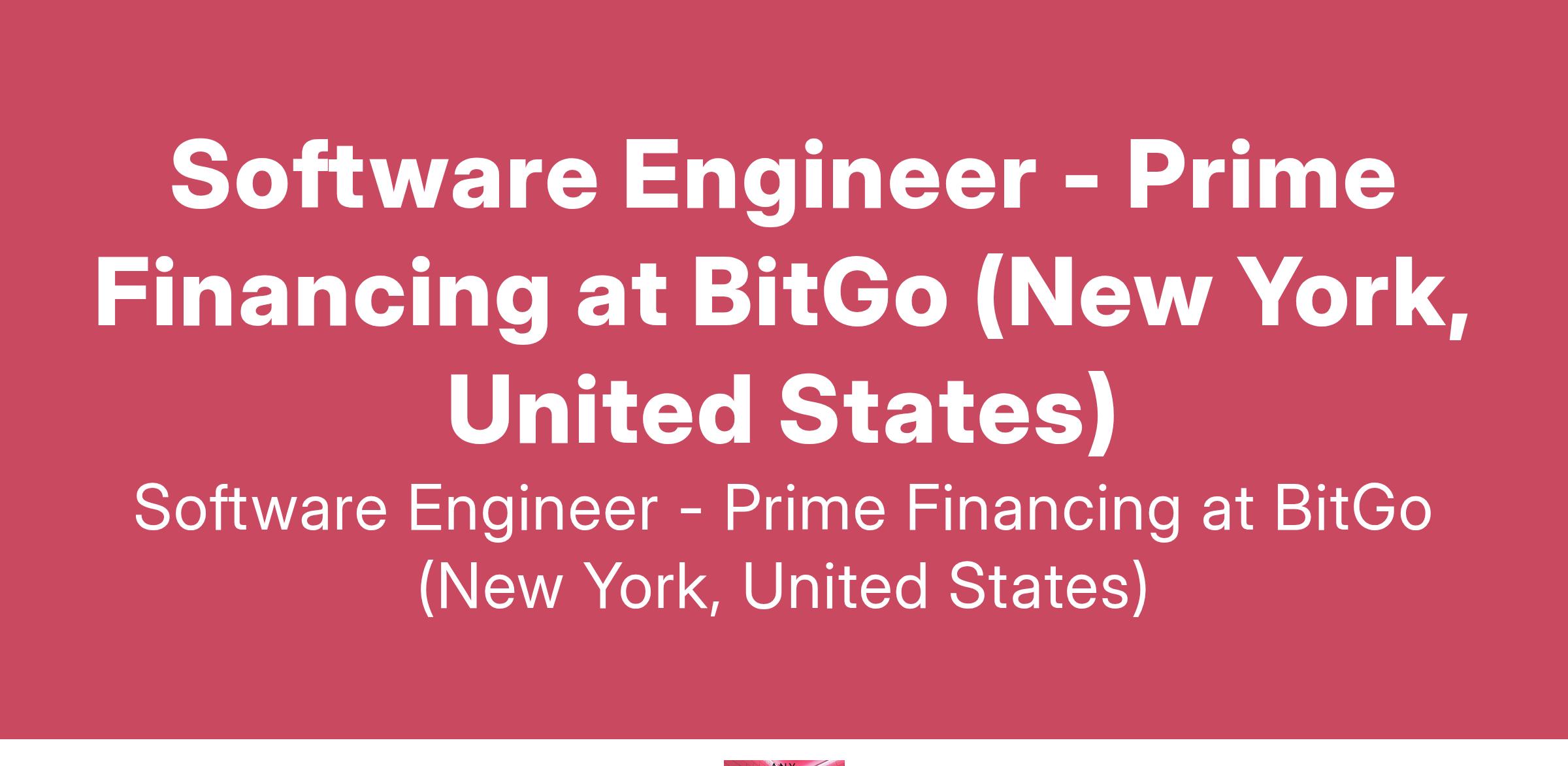 Software Engineer - Prime Financing at BitGo (New York, United States)