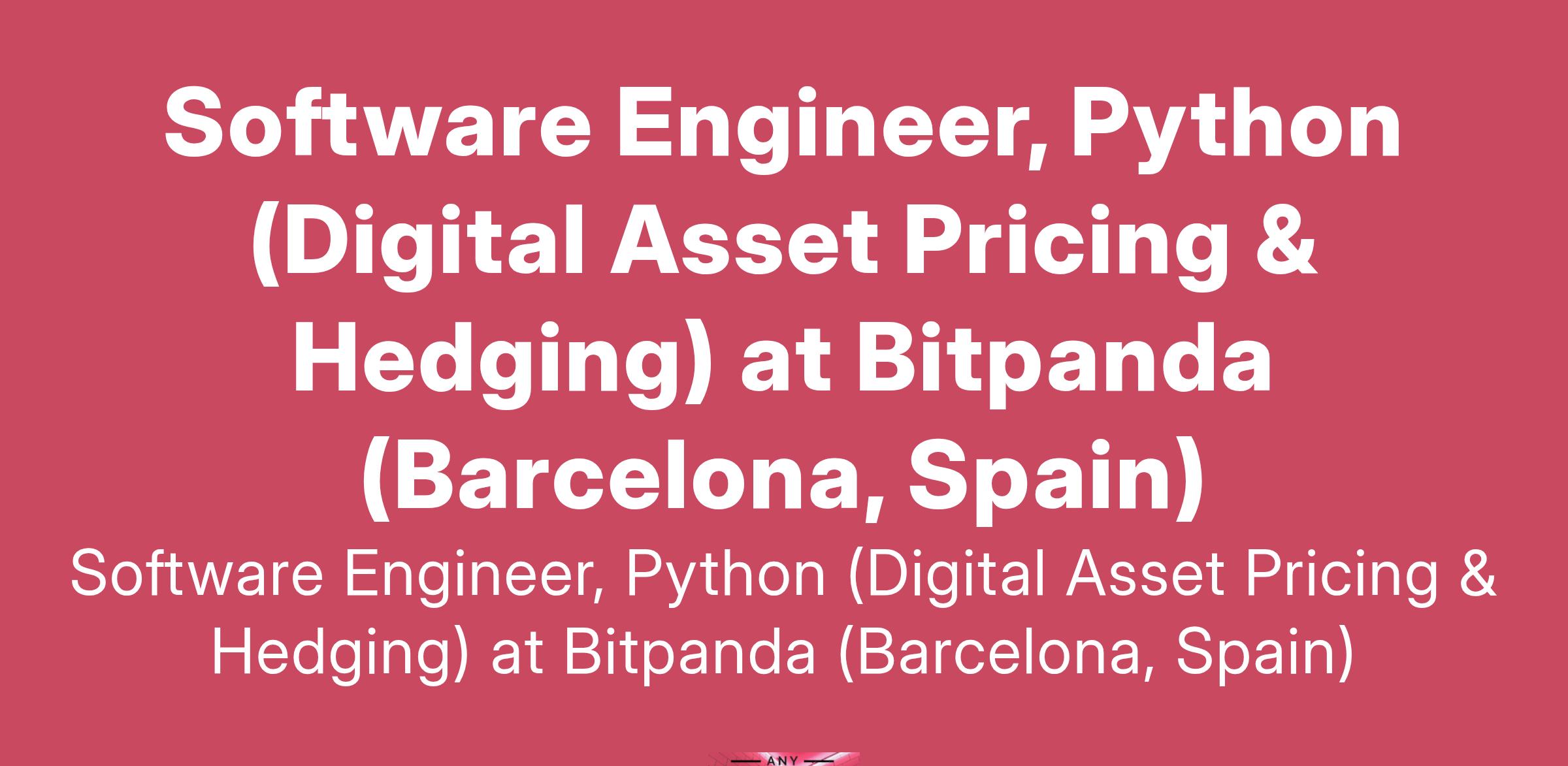 Software Engineer, Python (Digital Asset Pricing & Hedging) at Bitpanda (Barcelona, Spain)