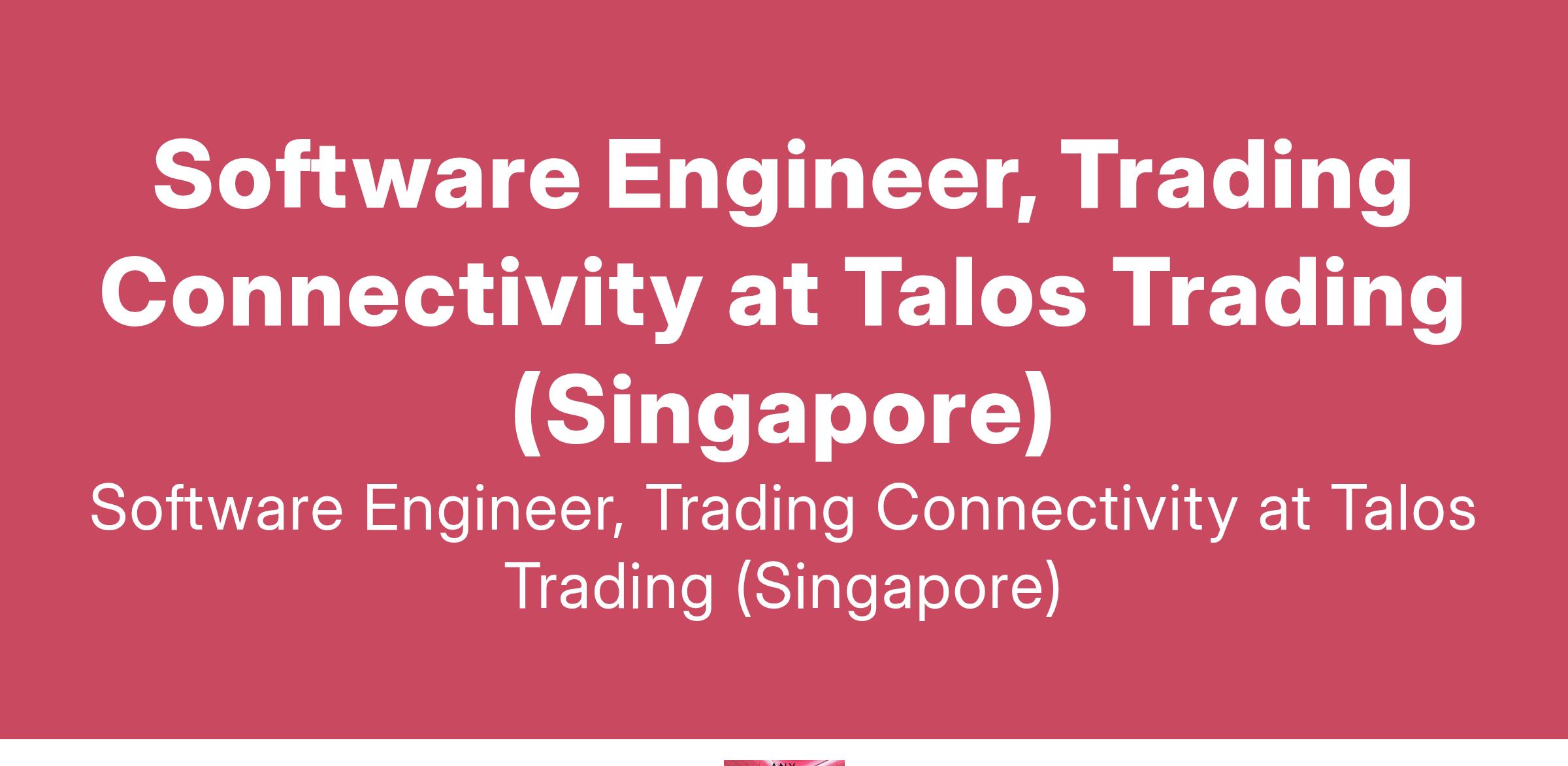 Software Engineer, Trading Connectivity at Talos Trading (Singapore)
