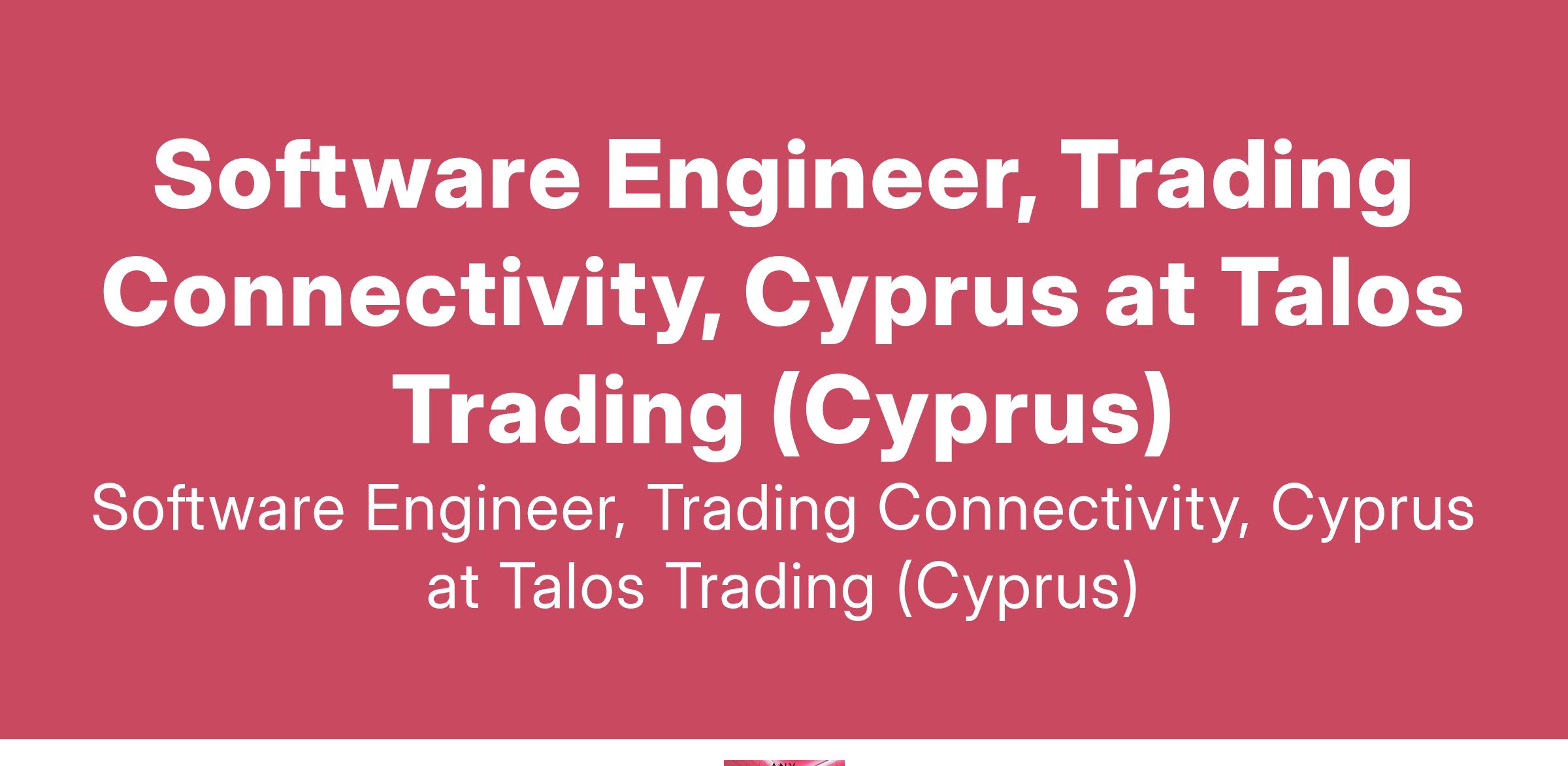 Software Engineer, Trading Connectivity, Cyprus at Talos Trading (Cyprus)