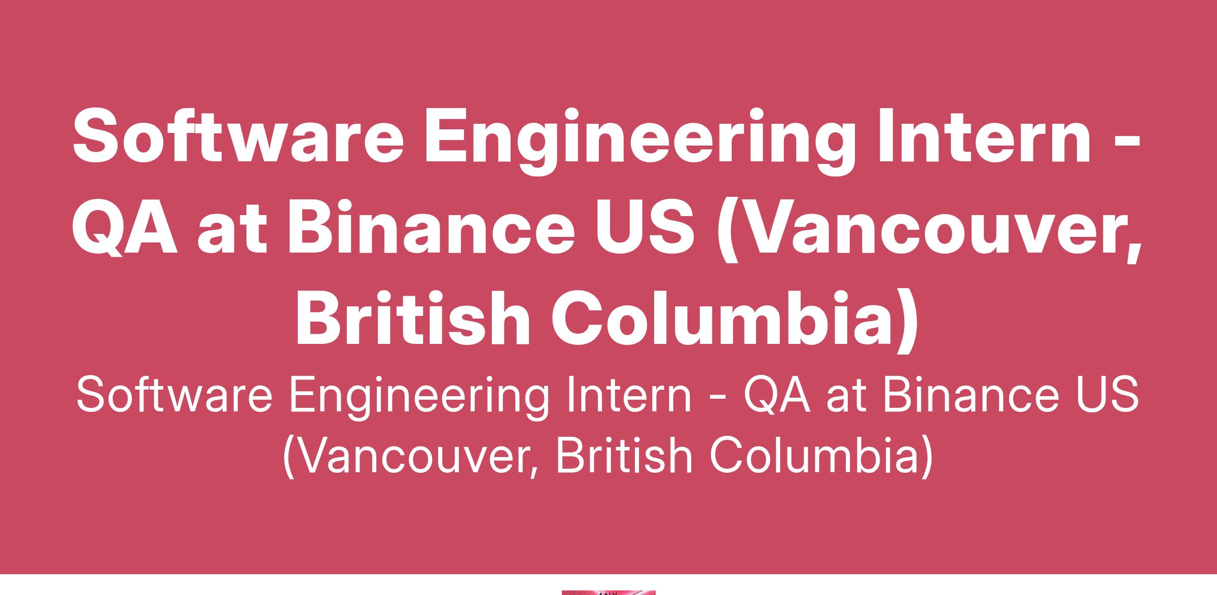 Software Engineering Intern - QA at Binance US (Vancouver, British Columbia)