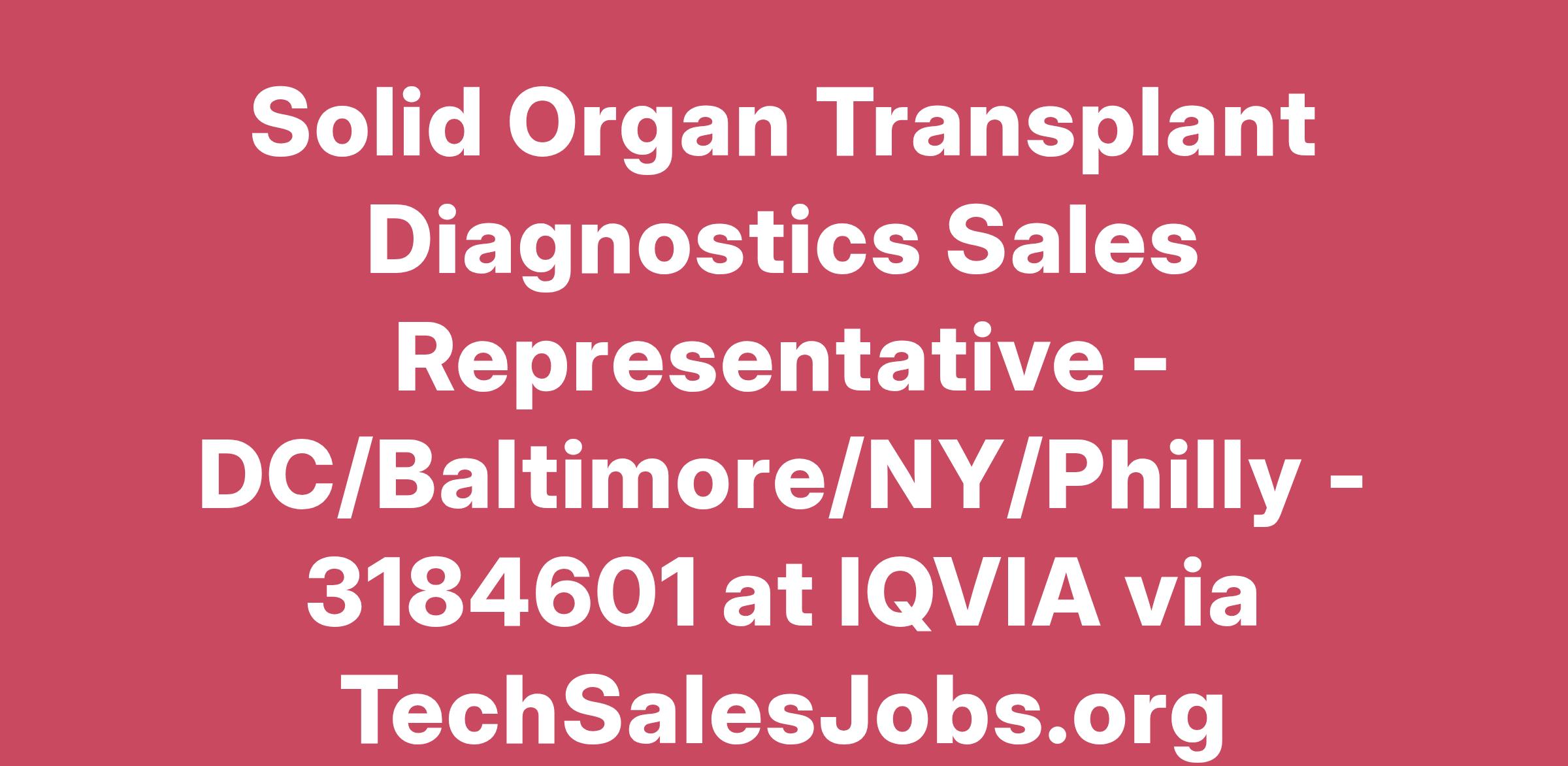 Solid Organ Transplant Diagnostics Sales Representative - DC/Baltimore/NY/Philly - 3184601 at IQVIA via TechSalesJobs.org