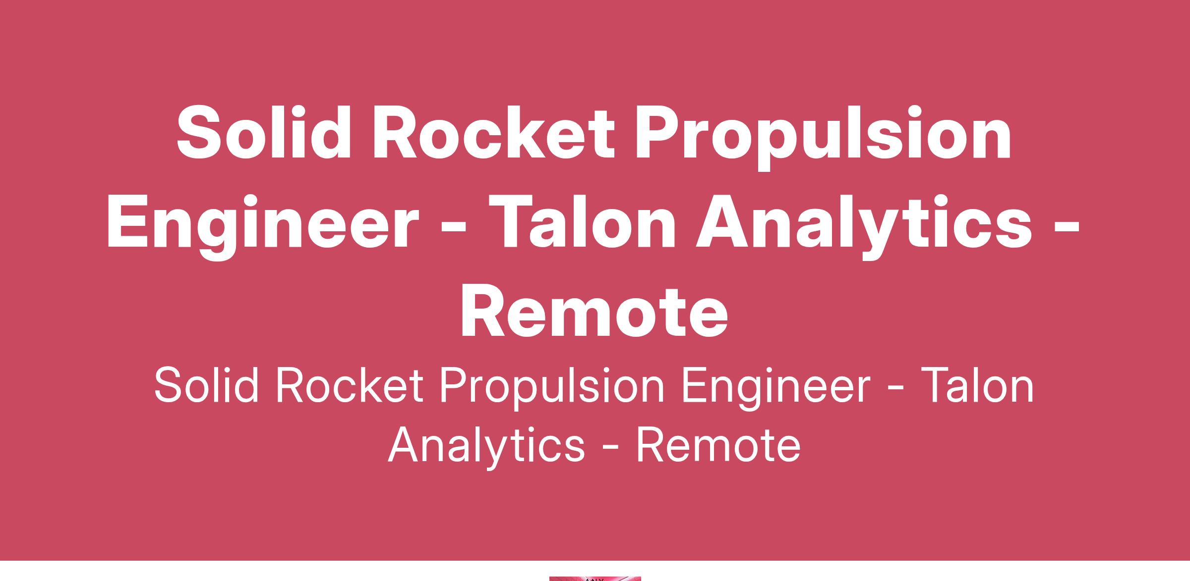 The Solid Rocket Propulsion Engineer will apply propulsion modeling techniques to supply the conceptual and detailed design and development of rocket-based weapon systems. In this role you will use physics-based concept design tools to synthesize booster stack and kill vehicle concepts. You will be required to assist with drafting SSOW and specifications.