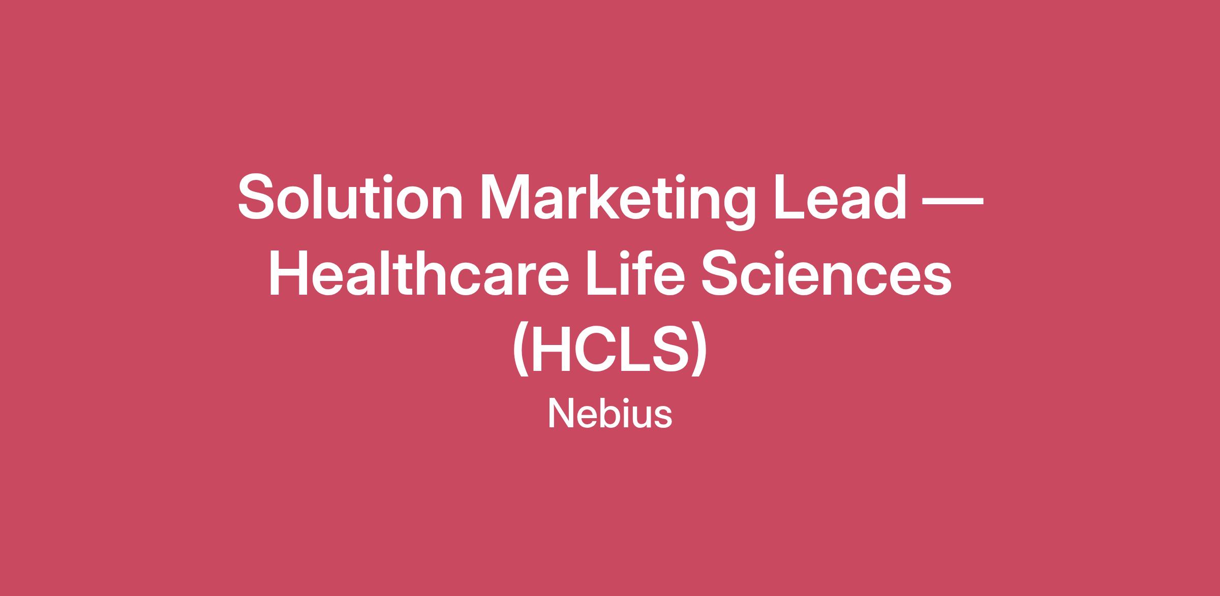 Why work at NebiusNebius is leading a new era in cloud computing to serve the global AI economy. We create the tools and resources our customers need to solve real-world challenges and transform industries, without massive infrastructure costs or the need to build large in-house AI/ML teams. Our employees work at the cutting edge of AI cloud infrastructure alongside some of the most experienced and innovative leaders and engineers in the field. Where we workHeadquartered in Amsterdam and listed on Nasdaq, Nebius has a global footprint with R&D hubs across Europe, North America, and Israel. The team of over 800 employees includes more than 400 highly skilled engineers with deep expertise across hardware and software engineering, as well as an in-house AI R&D team.The Role Solution Marketing Lead — Healthcare Life Sciences (HCLS) Location: Remote (US). Preferred locations in major healthcare and life sciences hubs: Boston/Cambridge, Durham (NC), Maryland/Virginia/Washington D.C., San Diego, or the San Francisco Bay Area. Why work at Nebius? Nebius is leading a new era in cloud computing to serve the global AI economy. We create the tools and resources our customers need to solve real-world challenges and transform industries, without massive infrastructure costs or the need to build large in-house AI/ML teams. Our employees work at the cutting edge of AI cloud infrastructure alongside some of the most experienced and innovative leaders and engineers in the field. Where we work Headquartered in Amsterdam and listed on Nasdaq, Nebius has a global footprint with R&D hubs across Europe, North America, and Israel. The team of 800+ employees includes more than 400 highly skilled engineers with deep expertise in hardware and software engineering, as well as an in-house AI R&D team. The role The Solution Marketing Lead, for Healthcare and Life Sciences, will report to the VP of Marketing. You will lead our go-to-market strategy, messaging, and solution storytelling across the rapidly accelerating world of AI with a strong focus on the Pharmaceutical, Biotechnology, Drug Development, and Genomics segments. This is a senior individual contributor role critical to shaping how Nebius is positioned at the intersection of AI-native cloud infrastructure and advanced HCLS workloads, including drug discovery and development, genomics and multi-omics, molecular modeling, clinical research, and regulated AI workflows. You will drive awareness, adoption, and category leadership by translating Nebius’s technical capabilities into clear, differentiated solution narratives and proof points. You will work cross-functionally with product management, sales, sales enablement, alliances (including NVIDIA and HCLS ecosystem partners), and the broader marketing organization to accelerate pipeline and revenue impact. This role is ideal for someone who can operate strategically, execute quickly, and enjoys building from 0→1. You are welcome to work remotely from the United States with preferred locations in Boston, NY, NJ and other east coast locations. Responsibilities Define solution positioning and value propositions for AI-driven Healthcare & Life Sciences workloads on the Nebius AI Cloud and Inference Platform. Build solution blueprints and use-case narratives across drug discovery, molecular modeling, genomics, and clinical research workflows. Create messaging frameworks, pitch decks, objection-handling guidance, competitive battlecards, and sales tools to accelerate seller velocity. Translate technical outcomes into compelling business value narratives and ROI. Develop high-impact assets, including solution briefs, demo narratives, field playbooks, event presentations, webinars, and executive thought leadership. Enable and train sales teams and partners on how to effectively position Nebius for Healthcare & Life Sciences use cases. Partner with demand generation to drive industry pipeline campaigns and event activations. Lead joint solution marketing initiatives with key ecosystem partners, including NVIDIA, ISVs, data platforms, and HCLS technology partners Support PR, analyst relations, and industry influencer engagements; contribute to category-definition research and thought leadership Partner closely with GTM, product, alliances, customer success, and marketing teams to drive measurable business impact Qualifications Bachelor’s degree required; MS, MBA, or other advanced degree preferred. 10+ years of experience in solution marketing, product marketing, industry marketing, or technical GTM roles in healthcare & life sciences, AI/ ML Platforms and Cloud infrastructure or data platform Strong understanding of pharma, biotech, drug development, genomics, or adjacent HCLS workflows is must Strong storyteller with the ability to translate complex technical workflows into clear, compelling messaging tailored to executive, buyer, and practitioner audiences. Proven experience driving cross-functional alignment and working directly with product, sales, and technical field teams. Demonstrated ability to operate effectively in fast-moving, high-growth environments. Familiarity with major cloud platforms (AWS, Azure, Google Cloud) and GPU-accelerated AI workloads. Key employee benefits in the US: Health insurance: 100% company-paid medical, dental, and vision coverage for employees and families. 401(k) plan: Up to 4% company match with immediate vesting. Parental leave: 20 weeks paid for primary caregivers, 12 weeks for secondary caregivers. Remote work reimbursement: Up to $85/month for mobile and internet. Disability & life insurance: Company-paid short-term, long-term and life insurance coverage. Compensation We offer competitive salaries, ranging from US$184,000 to US$225,000 OTE (on target earnings), plus equity based on your experience. Title and compensation will be determined based on the candidate’s experience and qualifications. What we offer Competitive salary and comprehensive benefits package. Oppo