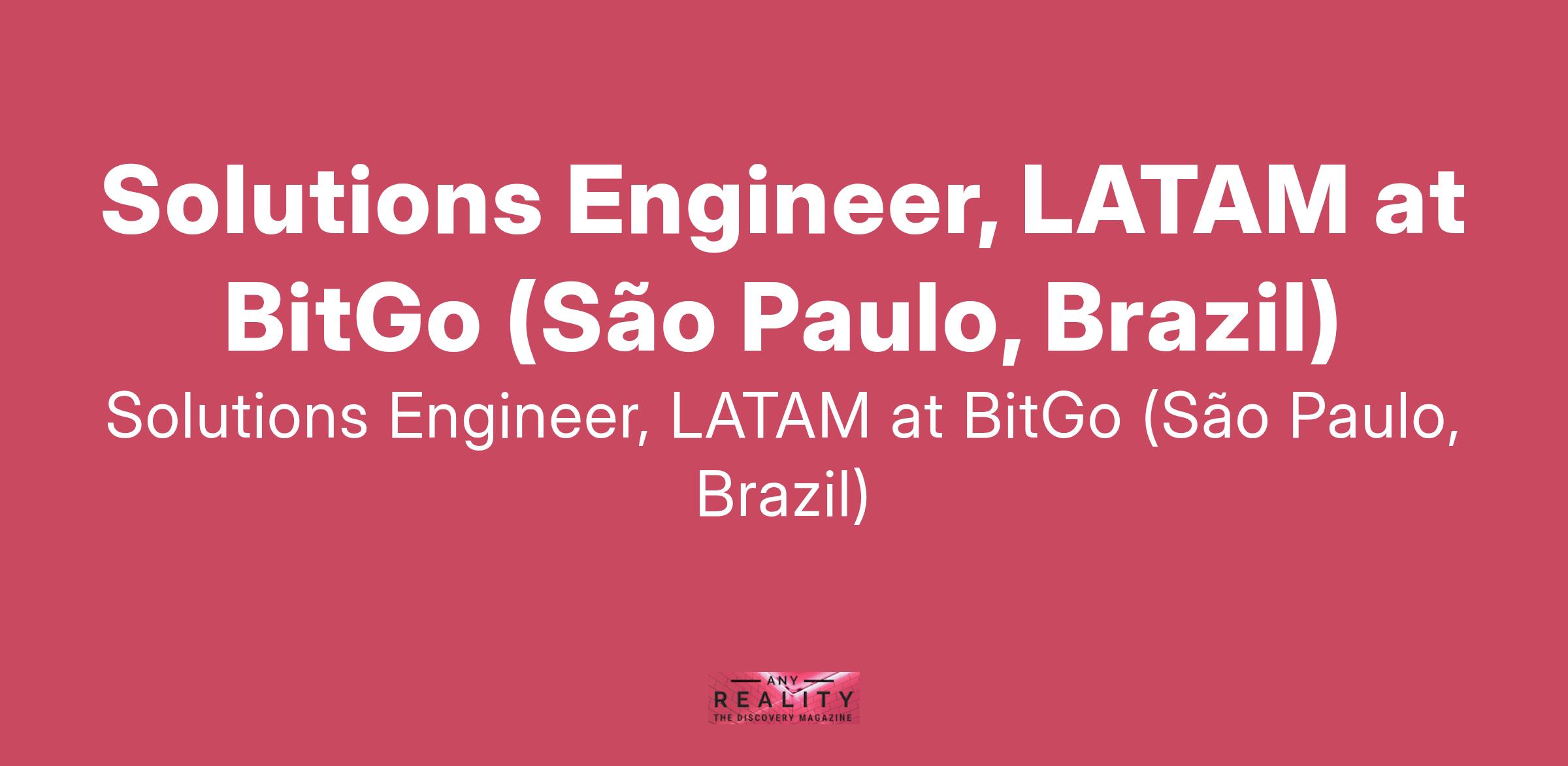Solutions Engineer, LATAM at BitGo (São Paulo, Brazil)