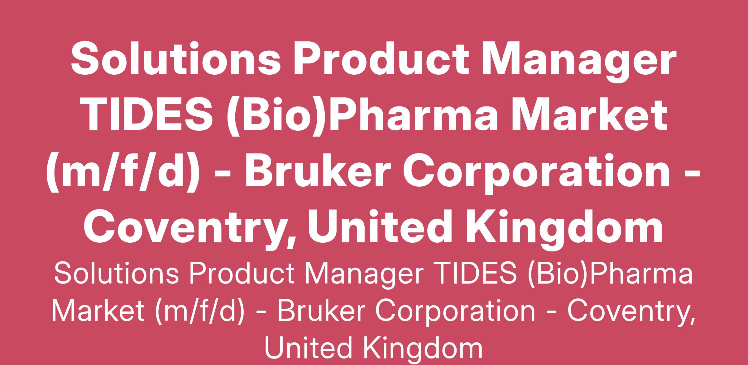 The Solutions Product Manager (Bio)pharma (m/f/d) has a four-fold mission: