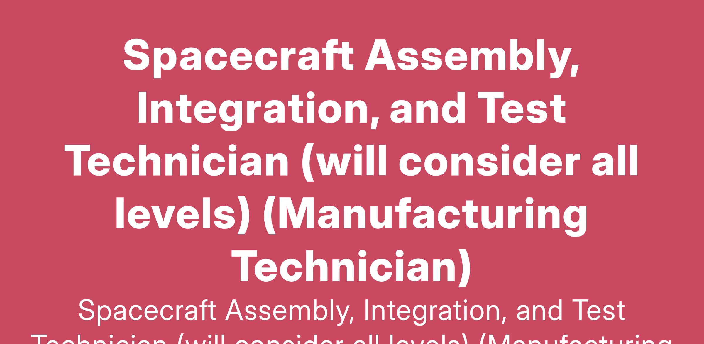 Spacecraft Assembly, Integration, and Test Technician (will consider all levels) (Manufacturing Technician)