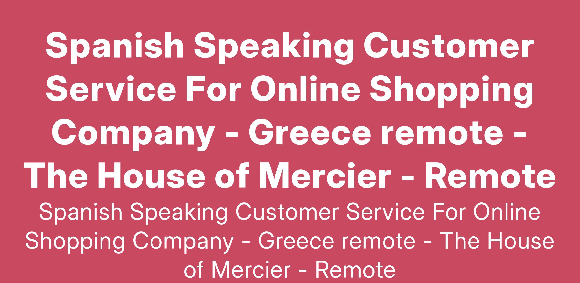 Spanish Speaking Customer Service For Online Shopping Company - Greece remote - The House of Mercier - Remote