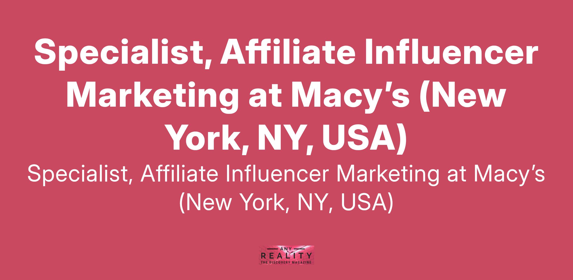 Specialist, Affiliate Influencer Marketing at Macy’s (New York, NY, USA)