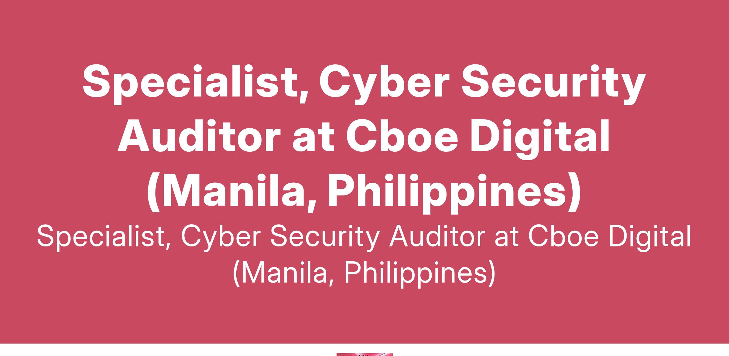 Specialist, Cyber Security Auditor at Cboe Digital (Manila, Philippines)
