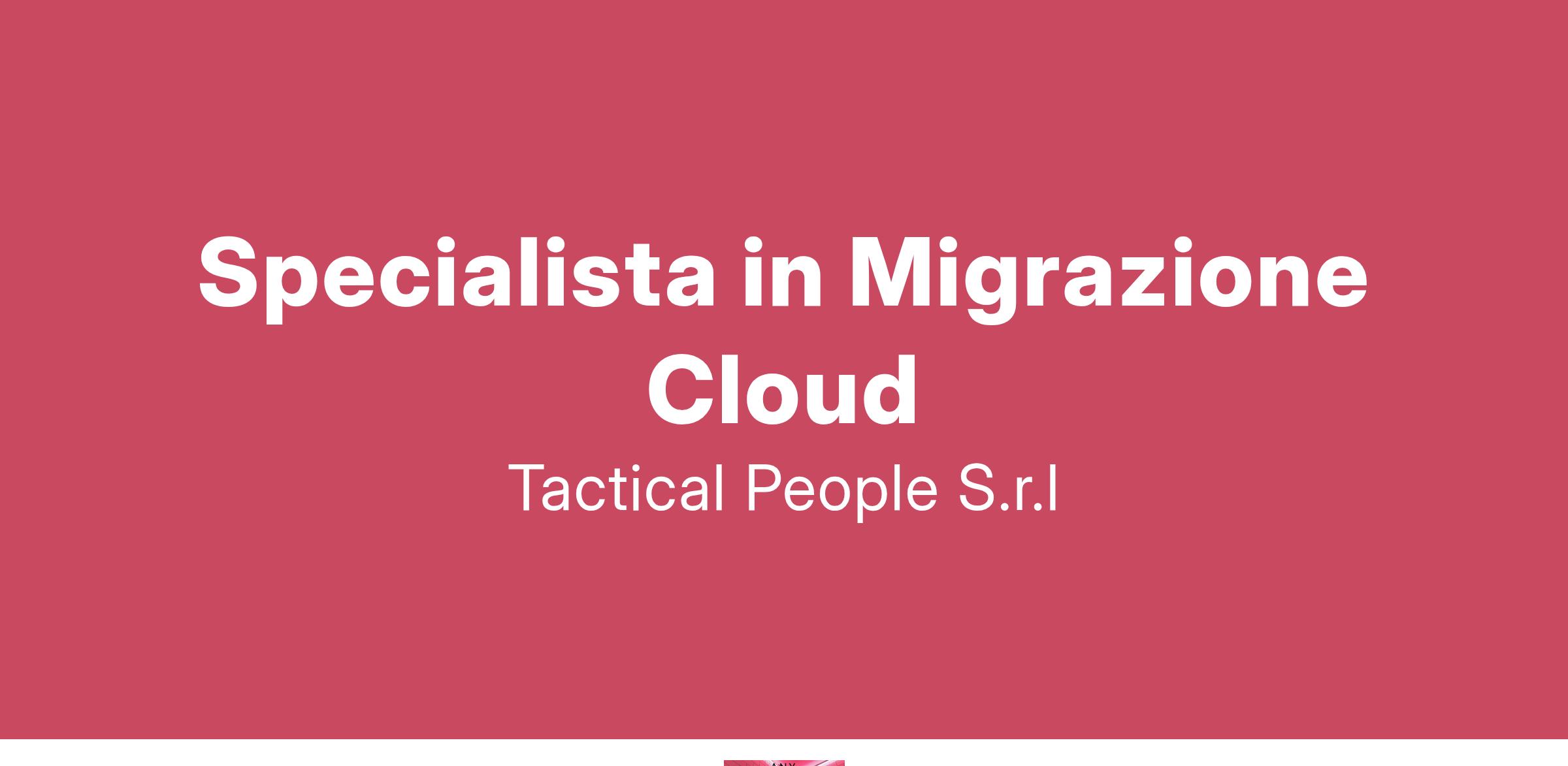 Unisciti a TACTICAL PEOPLE: Innovazione, Persone e Crescita nel Cuore della Digital Transformation Da oltre 20 anni, TACTICAL PEOPLE si posiziona come leader nel mercato ICT, guidando con passione e competenza i nostri clienti di medie e grandi dimensioni attraverso il dinamico percorso della digital transformation. La nostra mission è chiara: non solo abbracciare il cambiamento tecnologico, ma guidarlo, creando soluzioni all'avanguardia che plasmino il futuro digitale. In TACTICAL PEOPLE, crediamo fortemente nel mettere le persone al centro di ogni nostra iniziativa. Le persone sono il cuore pulsante della nostra azienda; il loro benessere, la loro crescita e il loro sviluppo sono la nostra priorità. Ci impegniamo a condividere le strategie aziendali con trasparenza e a fornire formazione e supporto a ogni livello, garantendo che ogni membro del team sia equipaggiato per eccellere e innovare. Stiamo cercando individui che condividano la nostra visione, che siano guidati dalla passione per la tecnologia e che desiderino essere protagonisti nella costruzione di un futuro digitale più luminoso. Se sei pronto a far parte di una squadra che valorizza il talento, incoraggia la crescita personale e professionale e lavora in prima linea nel settore della digital transformation, TACTICAL PEOPLE è il posto giusto per te. Posizione Aperta: Specialista in Migrazione Cloud Sede: Remoto Descrizione del ruolo: Il candidato ideale è un professionista con 3-5 anni di esperienza in ambito IT, specializzato nella migrazione di sistemi da on-premise al cloud. Possiede solide competenze su sistemi operativi Windows e Linux e in Azure Migrate. Cosa offriamo: Inserimento immediato in una Tech Community giovane e dinamica. TACTICAL LEARNING HUB, con corsi di aggiornamento e formazione. Il presente annuncio è rivolto ad entrambi i sessi, ai sensi delle leggi 903/77 e 125/91, e a persone di tutte le età e tutte le nazionalità, ai sensi dei decreti legislativi 215/03 e 216/03. I curricula dovranno pervenire completi di dicitura che autorizza il trattamento dei propri dati: “Si autorizza al trattamento dei dati personali ai sensi del D. Lgs. 196/2003.