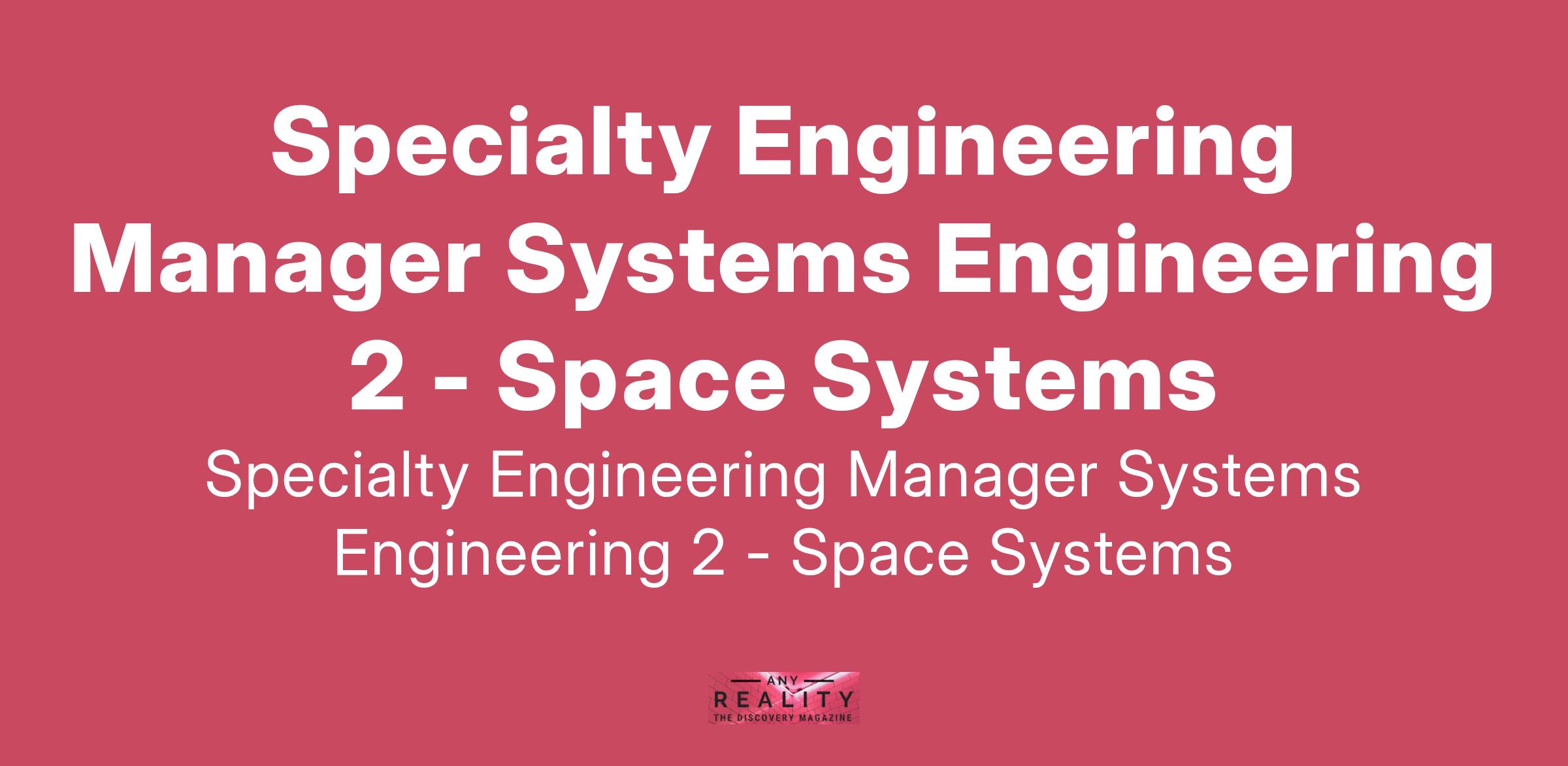 Specialty Engineering Manager Systems Engineering 2 - Space Systems