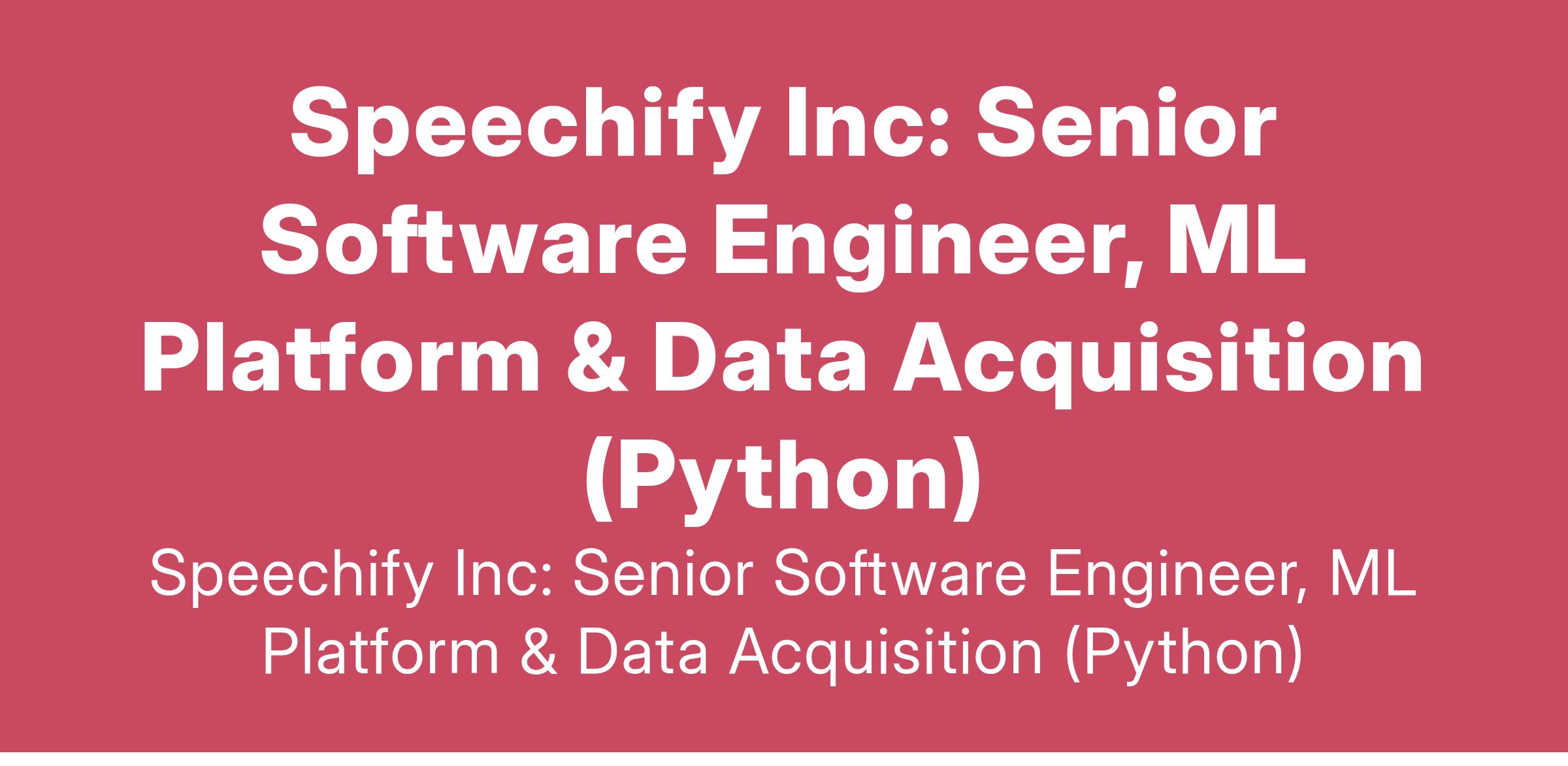 We're looking to hire for our Data Acquisition side of our AI team at Speechify. This role is responsible for all aspects of data collection to support our model training operations. We are able to build high-quality datasets at petabyte-scale and low cost through a tight integration of infrastructure, engineering, and research work. We are looking for a skilled Senior Software Engineer to join us.