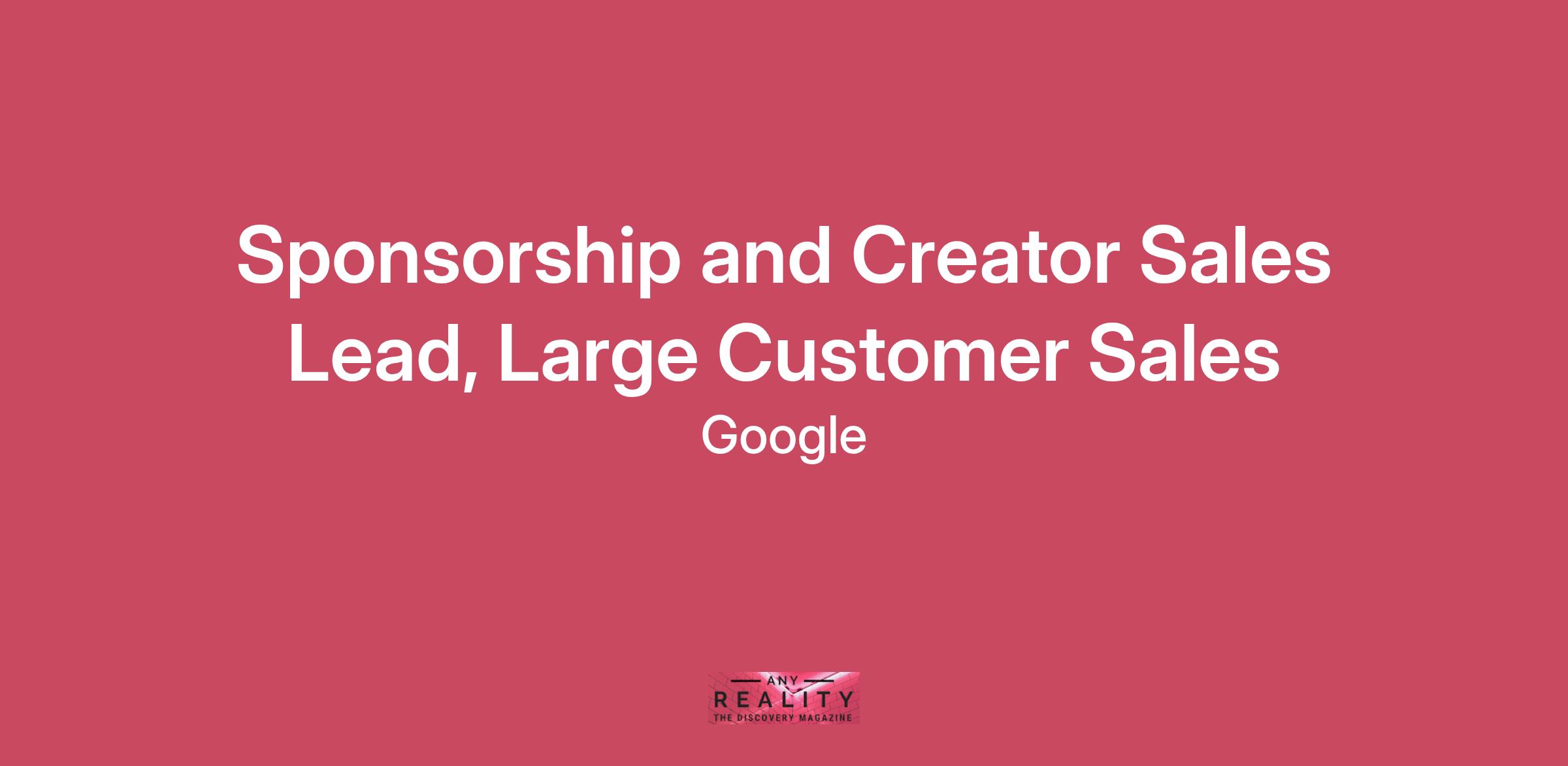 Aa s Sponsorship and Creator Sales Lead, you will be a proactive and specialized video seller that thrives in a fluid, cross-functional environment. You have a passion for helping to build demand, negotiate and close sponsorship packages, creator brand agreements and disrupt the changing video landscape. You have an understanding of how YouTube sponsorships and creator partnerships can support an advertiser’s business objectives.