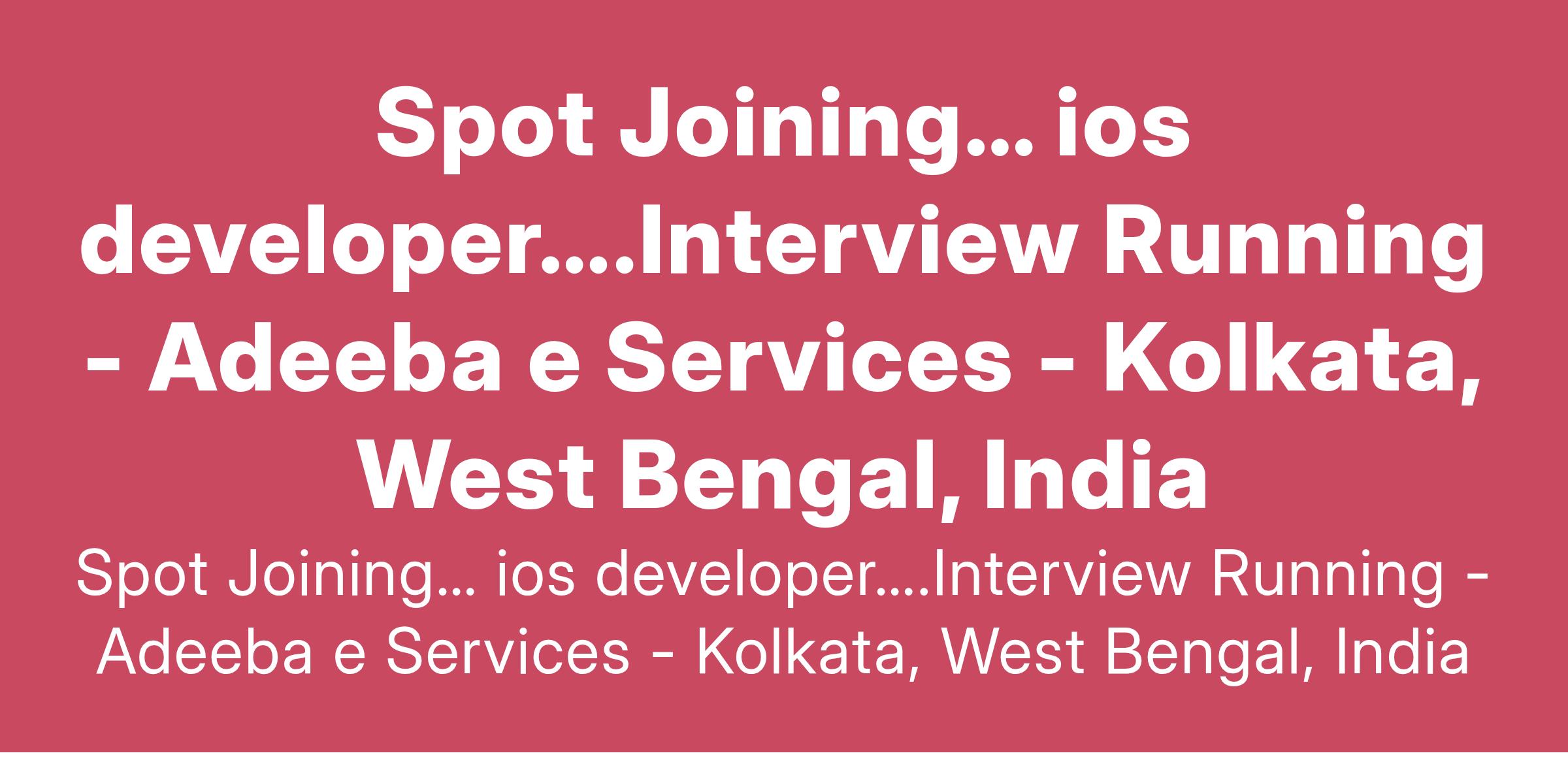 Spot Joining… ios developer….Interview Running - Adeeba e Services - Kolkata, West Bengal, India