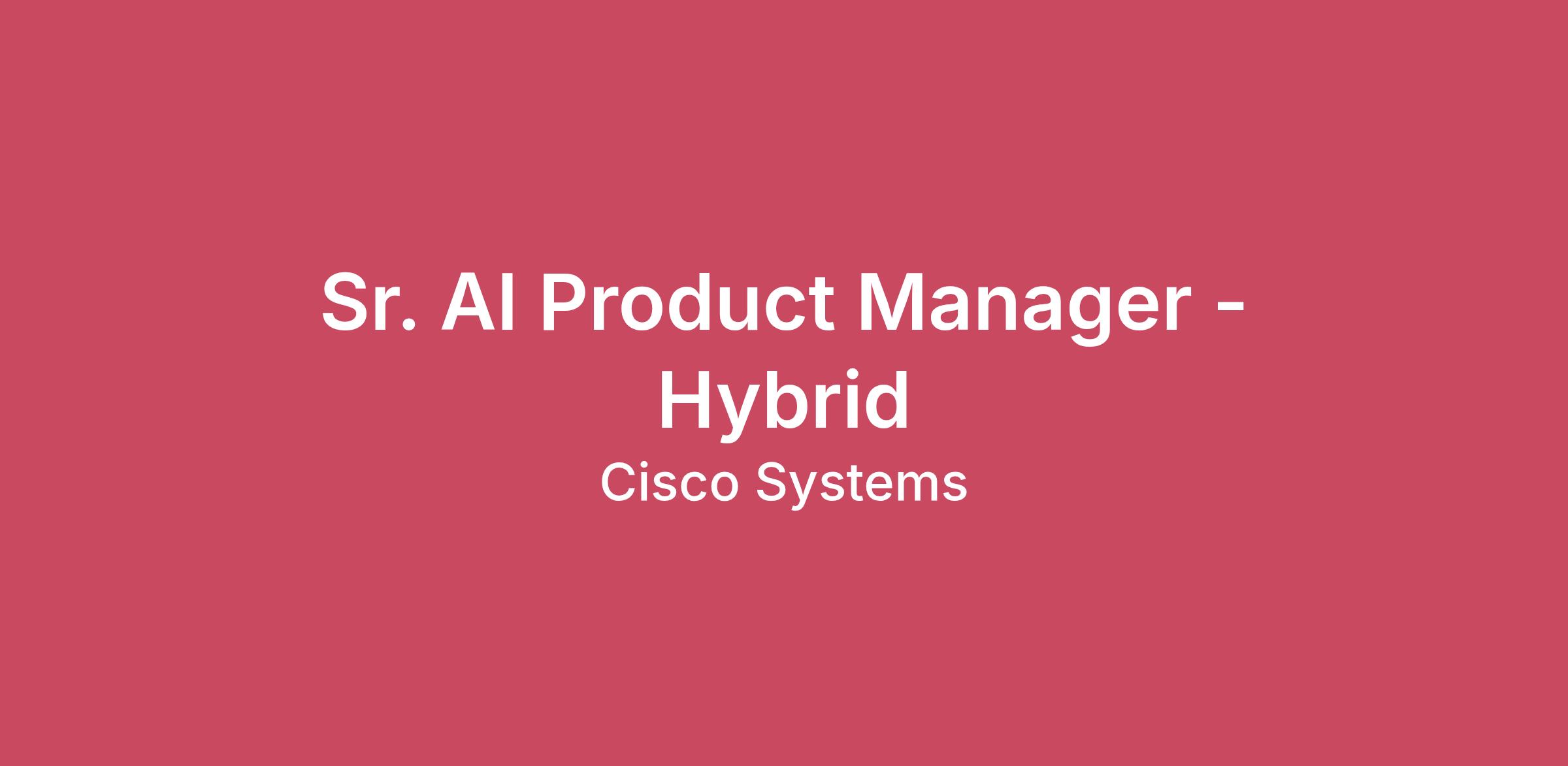 The application window is expected to close on: 04/30/2026Job posting may be removed earlier if the position is filled or if a sufficient number of applications are received.This position is based in San Jose, CA, North Carolina, or Seattle and operates under a hybrid work model.Meet the TeamThe Enterprise AI Platforms and Enablement team is a high-impact group formed from experts across CX, IT, and Design. They own key platforms like Circuit and Enterprise Search, serving as the central engine for Cisco’s enterprise AI strategy. The team is dedicated to driving the development and launch of advanced AI-powered automation products that streamline workflows across engineering, finance, and general employee domains. Their work fits into the larger picture by enhancing productivity and integrating seamlessly with enterprise platforms to support business goals. Your ImpactAs a Senior AI Product Manager, you will play a critical role in shaping our product portfolio across two strategic pillars: Infrastructure Efficiency and User Experience. You will drive initiatives to optimize token costs through engineering collaboration and build "super agents" via our Agent Builder project to manifest advanced user experiences on the web. You will own the product lifecycle, monitoring usage metrics closely to identify adoption trends and proactively implementing strategies to maintain our ambitious productivity targets. By translating complex technical requirements into actionable roadmaps, you will work cross-functionally to ensure every product we ship is secure, cost-effective, and delivers measurable value to our global workforce.Key ResponsibilitiesProduct Strategy & Roadmap: Develop and refine the vision, strategy, and roadmap for enterprise AI solutions, aligning with stakeholder needs and Cisco’s business goals.Requirements Gathering & PRD Ownership: Lead the requirements gathering process; synthesize user problems and solution ideas from focus groups and other sources into clear, actionable Product Requirement Documents (PRDs).Cross-Functional Leadership: Work closely with engineering, design, security, legal, and business teams to ensure successful product delivery and compliance with privacy/security standards.User-Centric Design: Advocate for automation features that address high-impact workflows and integrate with complex enterprise tools (e.g., Webex, Outlook, SharePoint, Jira).Privacy & Trust: Champion privacy-by-design, ensuring features such as “right to be forgotten,” persistent memory controls, and secure user data handling are prioritized and implemented.Stakeholder Engagement: Facilitate user focus groups, synthesize feedback, and iterate on prototypes to ensure solutions meet real-world needs.Metrics & Success Evaluation: Define indicators for pilots and user testing; analyze data to advise product improvements and drive adoption.Skills Marketplace Development: Collaborate with internal security/AI teams to develop and vet an internal skills marketplace, enabling secure skill sharing and automation.Minimum Qualifications10+ years in product management, with specific domain experience in AI (e.g., Machine Learning, Natural Language Processing, or Reinforcement Learning).Proven track record of launching successful products from concept to pilot to deployment in enterprise environments.Experience working with technical teams and understanding APIs, integrations, and enterprise data architectures.Strong familiarity with privacy, security, and compliance requirements in SaaS/enterprise environments.Preferred QualificationsDeep expertise in generative AI or large-scale automation platforms.Strong analytical skills; comfortable synthesizing complex feedback and translating it into clear product requirements.Experience facilitating workshops, focus groups, and user testing.Ability to work independently and lead cross-functional teams in a hybrid office environment (San Jose, RTP, or Seattle).Strategic vision with a hands-on approach to execution and metric-driven product management.Why Cisco? At Cisco, we’re revolutionizing how data and infrastructure connect and protect organizations in the AI era – and beyond. We’ve been innovating fearlessly for 40 years to create solutions that power how humans and technology work together across the physical and digital worlds. These solutions provide customers with unparalleled security, visibility, and insights across the entire digital footprint.Fueled by the depth and breadth of our technology, we experiment and create meaningful solutions. Add to that our worldwide network of doers and experts, and you’ll see that the opportunities to grow and build are limitless. We work as a team, collaborating with empathy to make really big things happen on a global scale. Because our solutions are everywhere, our impact is everywhere. We are Cisco, and our power starts with you. Message to applicants applying to work in the U.S. and/or Canada:The starting salary range posted for this position is $191,400.00 to $281,400.00 and reflects the projected salary range for new hires in this position in U.S. and/or Canada locations, not including incentive compensation*, equity, or benefits.Individual pay is determined by the candidate's hiring location, market conditions, job-related skillset, experience, qualifications, education, certifications, and/or training. The full salary range for certain locations is listed below. For locations not listed below, the recruiter can share more details about compensation for the role in your location during the hiring process.U.S. employees are offered benefits, subject to Cisco’s plan eligibility rules, which include medical, dental and vision insurance, a 401(k) plan with a Cisco matching contribution, paid parental leave, short and long-term disability coverage, and basic life insurance. Please see the Cisco careers site to discover more benefits and perks. Employees may be eligible to receive grants of Ci