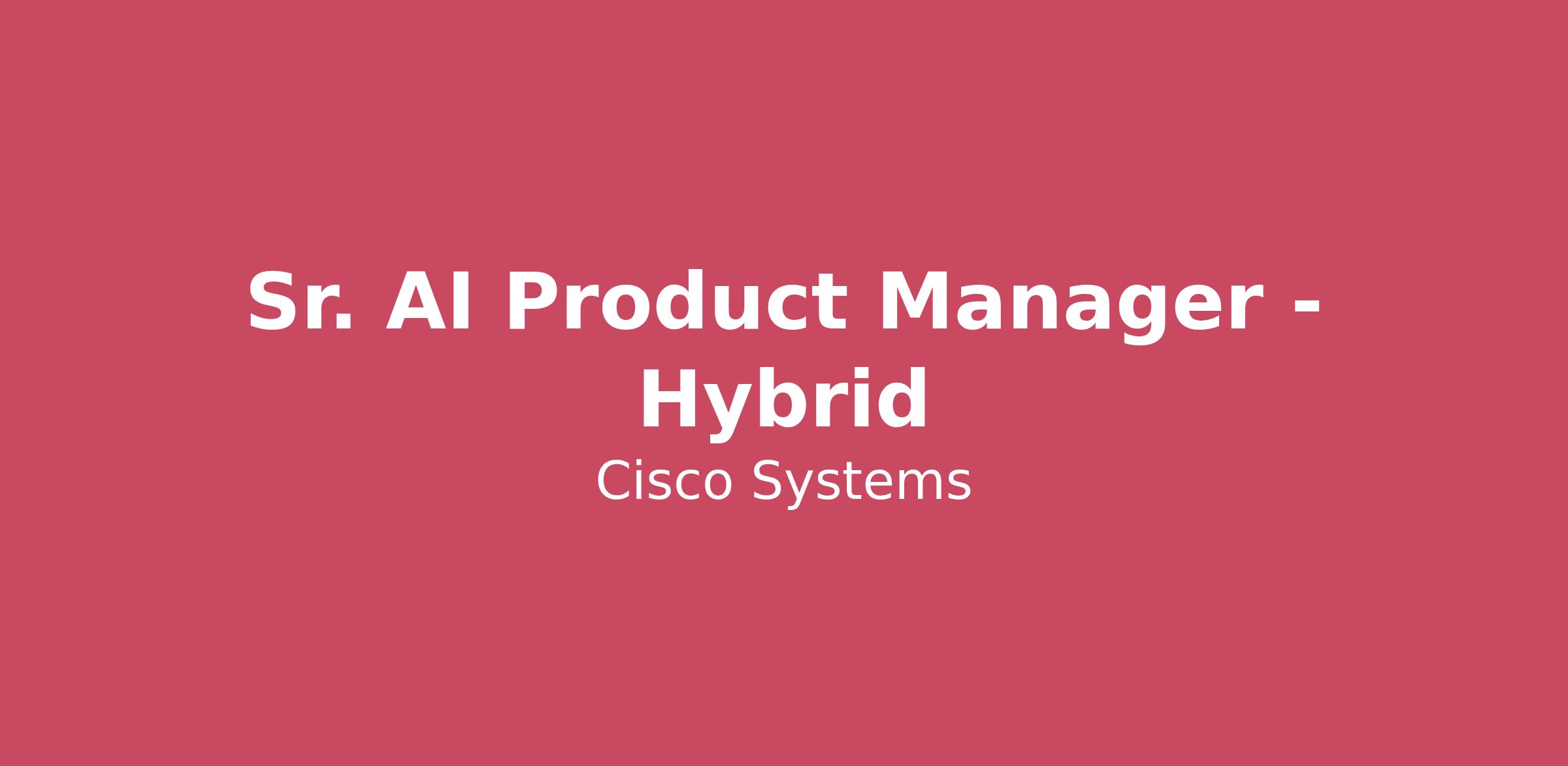 The application window is expected to close on: 04/30/2026Job posting may be removed earlier if the position is filled or if a sufficient number of applications are received.This position is based in San Jose, CA, North Carolina, or Seattle and operates under a hybrid work model.Meet the TeamThe Enterprise AI Platforms and Enablement team is a high-impact group formed from experts across CX, IT, and Design. They own key platforms like Circuit and Enterprise Search, serving as the central engine for Cisco’s enterprise AI strategy. The team is dedicated to driving the development and launch of advanced AI-powered automation products that streamline workflows across engineering, finance, and general employee domains. Their work fits into the larger picture by enhancing productivity and integrating seamlessly with enterprise platforms to support usiness goals. Your ImpactAs a Senior AI Product Manager, you will play a critical role in shaping our product portfolio across two strategic pillars: Infrastructure Efficiency and User Experience. You will drive initiatives to optimize token costs through engineering collaboration and build "super agents" via our Agent Builder project to manifest advanced user experiences on the web. You will own the product lifecycle, monitoring usage metrics closely to identify adoption trends and proactively implementing strategies to maintain our ambitious productivity targets. By translating complex technical requirements into actionable roadmaps, you will work cross-functionally to ensure every product we ship is secure, cost-effective, and delivers measurable value to our global workforce.Key ResponsibilitiesProduct Strategy & Roadmap: Develop and refine the vision, strategy, and roadmap for enterprise AI solutions, aligning with stakeholder needs and Cisco’s business goals.Requirements Gathering & PRD Ownership: Lead the requirements gathering process; synthesize user problems and solution ideas from focus groups and other sources into clear, actionable Product Requirement Documents (PRDs).Cross-Functional Leadership: Work closely with engineering, design, security, legal, and business teams to ensure successful product delivery and compliance with privacy/security standards.User-Centric Design: Advocate for automation features that address high-impact workflows and integrate with complex enterprise tools (e.g., Webex, Outlook, SharePoint, Jira).Privacy & Trust: Champion privacy-by-design, ensuring features such as “right to be forgotten,” persistent memory controls, and secure user data handling are prioritized and implemented.Stakeholder Engagement: Facilitate user focus groups, synthesize feedback, and iterate on prototypes to ensure solutions meet real-world needs.Metrics & Success Evaluation: Define indicators for pilots and user testing; analyze data to advise product improvements and drive adoption.Skills Marketplace Development: Collaborate with internal security/AI teams to develop and vet an internal skills marketplace, enabling secure skill sharing and automation.Minimum Qualifications10+ years in product management, with specific domain experience in AI (e.g., Machine Learning, Natural Language Processing, or Reinforcement Learning).Proven track record of launching successful products from concept to pilot to deployment in enterprise environments.Experience working with technical teams and understanding APIs, integrations, and enterprise data architectures.Strong familiarity with privacy, security, and compliance requirements in SaaS/enterprise environments.Preferred QualificationsDeep expertise in generative AI or large-scale automation platforms.Strong analytical skills; comfortable synthesizing complex feedback and translating it into clear product requirements.Experience facilitating workshops, focus groups, and user testing.Ability to work independently and lead cross-functional teams in a hybrid office environment (San Jose, RTP, or Seattle).Strategic vision with a hands-on approach to execution and metric-driven product management.Why Cisco? At Cisco, we’re revolutionizing how data and infrastructure connect and protect organizations in the AI era – and beyond. We’ve been innovating fearlessly for 40 years to create solutions that power how humans and technology work together across the physical and digital worlds. These solutions provide customers with unparalleled security, visibility, and insights across the entire digital footprint.Fueled by the depth and breadth of our technology, we experiment and create meaningful solutions. Add to that our worldwide network of doers and experts, and you’ll see that the opportunities to grow and build are limitless. We work as a team, collaborating with empathy to make really big things happen on a global scale. Because our solutions are everywhere, our impact is everywhere. We are Cisco, and our power starts with you. Message to applicants applying to work in the U.S. and/or Canada:The starting salary range posted for this position is $191,400.00 to $281,400.00 and reflects the projected salary range for new hires in this position in U.S. and/or Canada locations, not including incentive compensation*, equity, or benefits.Individual pay is determined by the candidate's hiring location, market conditions, job-related skillset, experience, qualifications, education, certifications, and/or training. The full salary range for certain locations is listed below. For locations not listed below, the recruiter can share more details about compensation for the role in your location during the hiring process.U.S. employees are offered benefits, subject to Cisco’s plan eligibility rules, which include medical, dental and vision insurance, a 401(k) plan with a Cisco matching contribution, paid parental leave, short and long-term disability coverage, and basic life insurance. Please see the Cisco careers site to discover more benefits and perks. Employees may be eligible to receive grants of Cis