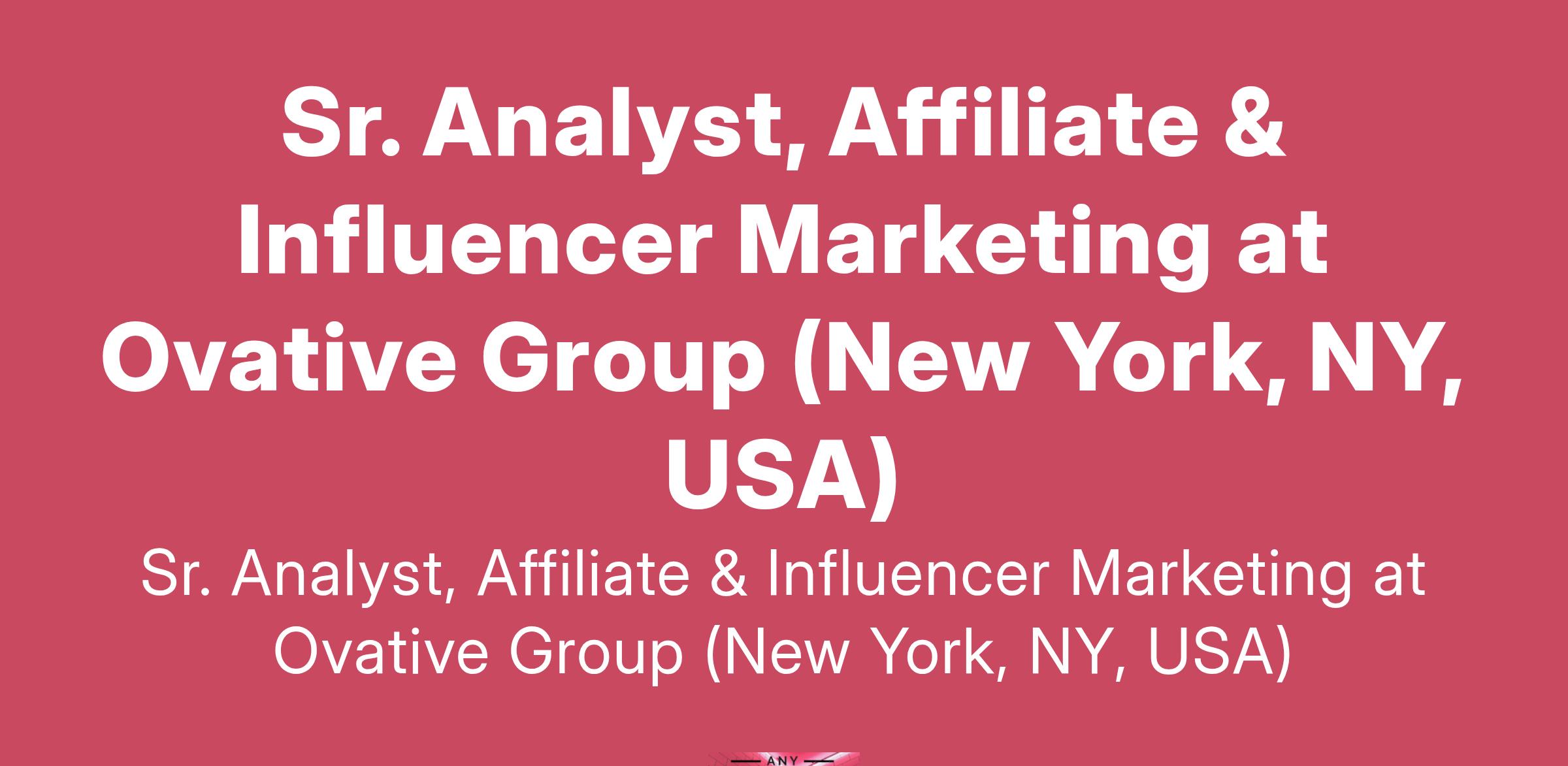 Sr. Analyst, Affiliate & Influencer Marketing at Ovative Group (New York, NY, USA)