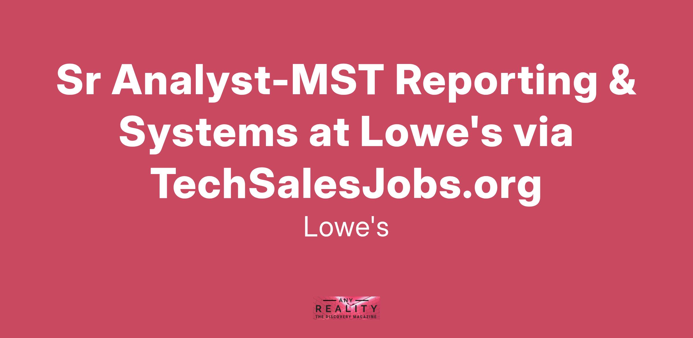Sr Analyst-MST Reporting & Systems at Lowe's via TechSalesJobs.org