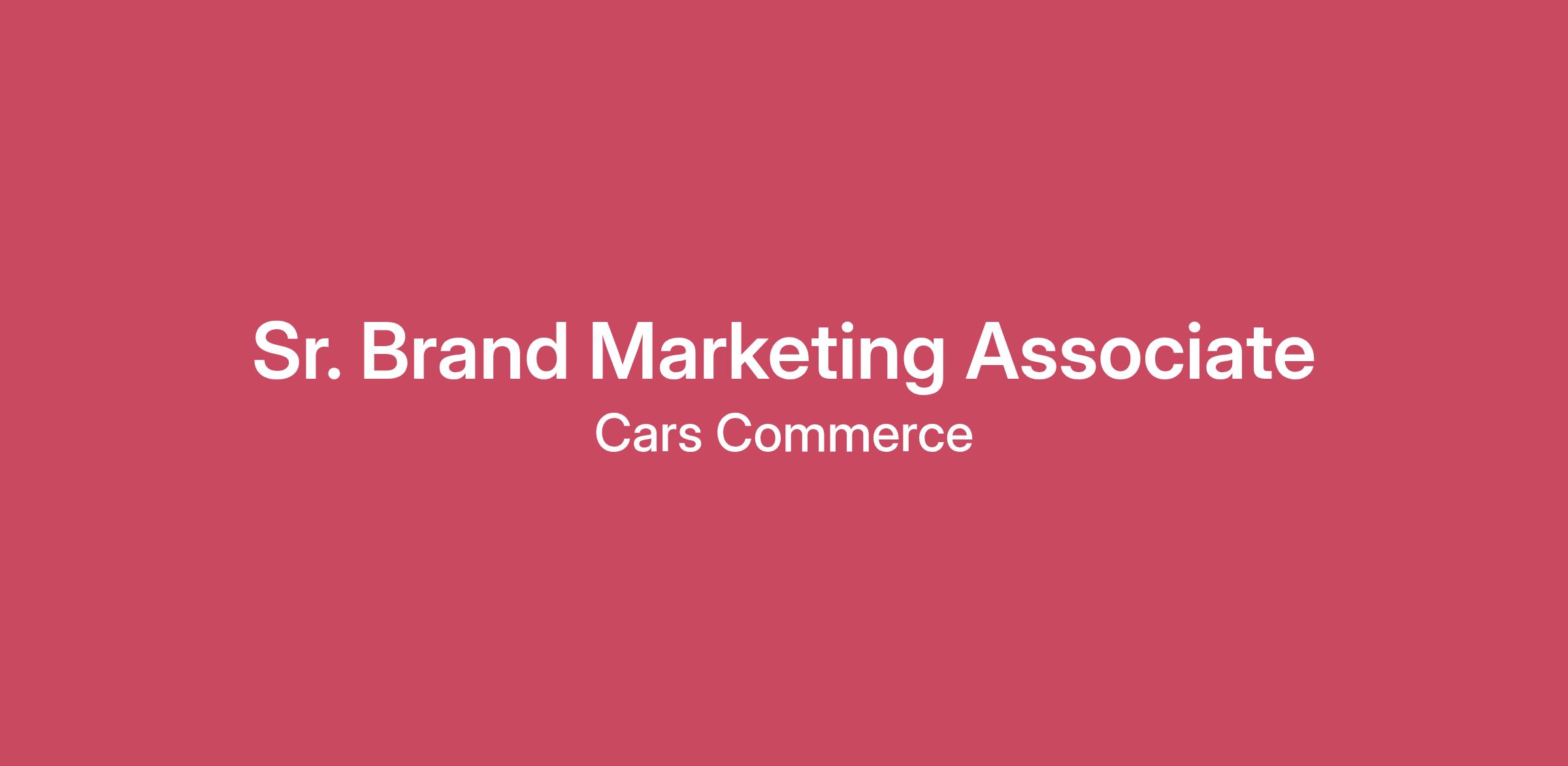 Be essential at Cars CommerceAt Cars Commerce, we’re fanatical about simplifying everything about car buying and selling. We do right by our customers and consumers to better connect the industry with simplified and tierless technology to enhance, measure and drive local automotive retail. Whether through our No.1 most recognized marketplace, Cars.com, our industry-leading digital experience, Dealer Inspire, our trade and appraisal technology, AccuTrade, our reputation-based digital wholesale auction marketplace, Dealerclub, or our new Cars Commerce Media Network, Cars Commerce is essential for success in the automotive industry.No one ever travels alone here: at its core, Cars Commerce is collaboration. In fact, it’s built into the very fabric of our shared values. We like to say we Rise Together – putting people at the center of what we do, from consumer to customer to community. Life at Cars Commerce makes it easy when we share the ethos to be Open to All, encouraging open-minded communication because we know diverse thinking yields better outcomes. But critical to our success is Caring to Challengeand Taking Ownership, fueling a competitive spirit in a respectful environment where we think about tomorrow but act today. At our foundation, we have integrity, Doing the Right Thing, even when it’s hard. It’s our shared commitment to these values that makes Cars Commerce a place where growth becomes not only possible, but downright unavoidable.But don’t take our word for it. As a U.S. News & World Report Best Company to Work For in 2024, we're obsessive about the employee experience. We are among the top 20% being declared “Best” of our industry based on six critical factors that are important to employee wellbeing, like quality of pay, benefits, work life balance and more.We are looking for a creative, passionate and detail-oriented Sr. Brand Marketing Associate to join the consumer marketing team for Cars.com. Reporting directly to the Brand Marketing Manager, you'll play a crucial role in creative strategy and production, writing briefs, ensuring brand consistency across all channels, collaborating internally and with external agency partners and helping to measure campaign effectiveness. This is an excellent opportunity for a highly organized, collaborative and innovative marketer looking to grow their career in strategic brand management and have fun building and growing an original dotcom brand.Key Responsibilities:Draft and finalize creative briefs ensuring all necessary information is clearly documented and aligned to the brand strategy.Lead the creative review and approval process, particularly social and digital, ensuring creative development remains on brief and on time.Manage the day to day influencer partnership process from selection through to creative execution and campaign measurement.Partner with our media agency and new partners or vendors to ensure creative placement and execution against brand strategy and guidelines and drive innovative thinking for creative partnership.Lead the tracking and aggregation of marketing campaign performance data across various channels and summarize and share learnings to partners internally and externally to drive continuous improvement.Compile reports focused on key brand health metrics, competitive insights, and campaign performance pulling out insights to share with the team.Collaborate closely with internal partners across social, lifecycle, product marketing, editorial, PR and others to drive consistent execution against the brand and content strategy across channels.Lead the development of printed materials for placement in dealerships, owning the vendor relationship, budget and overall project and timeline management.Serve as a main point of contact with external production vendors to ensure projects are delivered on time and within spec.Qualifications:2 - 5 years of experience in marketing or a related field.Bachelor’s degree in Marketing or a related field.Very detail-oriented with exceptional organizational skills and an intense focus on quality and detail in all output.Highly collaborative with an ability to partner across the organization to bring a project from concept to execution.Experience with social media and/or influencer marketing a plus.Strong written and verbal communication skills.#LI-EJ #LI-Remote In the spirit of pay transparency, we are excited to share the base salary range for this position. In addition to base salary, some roles are eligible for our bonus and/or equity programs, depending on level and role. Regular full-time positions are eligible for our comprehensive benefits package. If you are hired at Cars Commerce, your final base salary compensation will be determined based on factors such as skills and/or experience. If the salary range is close to what you're seeking, then we encourage you to apply and learn more about the total compensation package for this position.Salary Range$64,600.00-79,150.00Our Comprehensive Benefits Package includes:Medical, Dental & Vision Healthcare PlansNew Hire Stipend for Home Office Set-UpGenerous PTORefuel - a service based recognition program where employees receive additional paid time away to learn grow and resetPaid Holidays, Floating Holiday, Volunteer Day, Recharge DayLearn more about our Benefits, Perks, & Culture on our LinkedIn Life Pages!For US-based Positions: Applicants must be authorized to work in the United States. Please note that we are unable to sponsor employment visas at this time.We are an equal opportunity employer and value diversity at our company. We do not discriminate on the basis of race, religion, color, national origin, gender, sexual orientation, age, marital status, veteran status, or disability status. California Applicants: Click here to review our California Privacy Policy for Applicants. For current employees, please click here to review our California Privacy Policy for Employees.