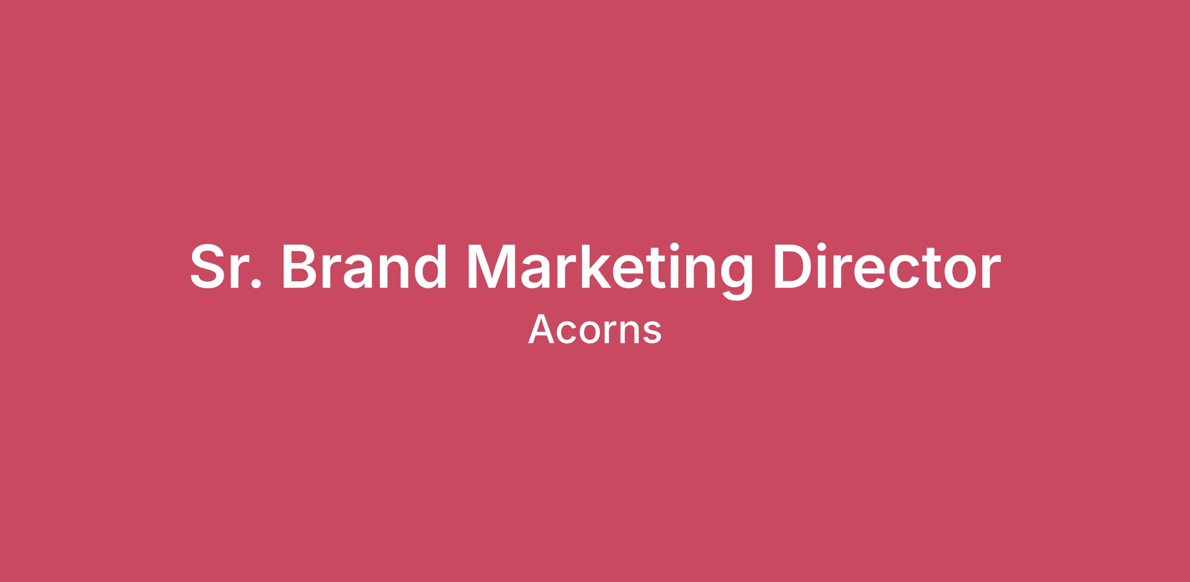 At Acorns, our mission is to look after the financial best interests of the up-and-coming, beginning with the empowering, proud step of micro-investing. How do we accomplish our mission? Our values.Lead With Heart - With compassion, integrity, and tenacity, inspire yourself and others to move past all previous thresholds of possibilityMake Bold Decisions - We are creating a new world. Be optimistic, adventurous, and courageous. Leap fearlessly into the futureAlways Build Trust - Say what you mean, mean what you say, and do what you say you’re going to do. We are all owners. We are one teamNever Stop Growing - Change IS the constant. Stay hungry and curious. Be relentless in the pursuit of progressFind a way - Never settle, no excuses, nothing is impossible. Just make it happenOur values guide us, and our mission drives us. Come join us and help deliver financial wellness for the whole family, putting the tools of wealth-making into everyone’s hands.________________________________________________________________________Sr Brand Marketing Director | AcornsHelp redefine what financial wellness feels like in America.Acorns is seeking an entrepreneurial Sr Brand Marketing Director to lead Acorns and Acorns Early in shaping, shipping, and scaling the brand at a pivotal moment in our growth. This is a role for someone who wants to architect culture, build brand love, and move millions toward financial wellness.You’ll lead brand marketing, social, partnerships, and integrated activations as we:Grow our new brand platformScale upper-funnel reachBring new family-focused products to marketDeepen connection with young investors and parentsIf you can switch gears effortlessly between strategy, zeitgeist, and flawless execution - and do it with speed, creativity, and founder-level energy - this is your stage.Acorns is a remote-first organization, offering the flexibility to work remotely while providing optional access to office space in Irvine, CA.What you will do at Acorns:Build Breakthrough Brand CampaignsArchitect and direct integrated campaigns that shift perception of who investing is for and why they should careOwn strategy and execution across brand media, OOH, social, creator, and partnerships.Ensure every touchpoint delivers one cohesive, emotionally charged story that inspires action.Make Acorns Culturally UnmissableLead our social + creator ecosystem to generate cultural relevance and energy.Identify and activate the moments, partners, and conversations that make the brand pop in the feed and in culture.Grow awareness and trust with bold, differentiated content.Drive Cross-Functional ImpactConnect Brand, Creative, Growth, and Data into one unified engine.Protect the integrity of the brand while pushing for innovation, speed, and craft.Manage and inspire a high-performing team with clarity, direction, and founder-level urgency.What you will bring to Acorns:10+ years leading brand or integrated marketing at a high-growth consumer brand; fintech experience a plus.Demonstrated ability to craft and ship big, distinctive brand work with measurable business impact.A track record of running teams through tight timelines, multi-channel campaigns, and GTM launches.Deep intuition for storytelling, culture, and customer psychology - backed by a data-led mindset.Excellence in creative judgment, executional rigor, and cross-functional leadership.Founder-like urgency, energy, and ownership.Hunger to deliver game-changing products.Exceptional drive and precision in delivery.A belief that your work is tied to your life's mission.Optimistic about the potential of societal change.You are not expected to have experience with all listed requirements. If you feel passionate about Acorns' mission, vision, and values, please apply.What we offer:Competitive salary and stock optionsA comprehensive benefits package for you and your familyFlexible work location, hours, and paid time off401(k) matchingMonthly Acorns account contribution & GoHenry account for your familyMindfulness and Financial Wellness resources, Headspace and Addition WealthAcorns Career Development Program (Ongoing training sessions, development plans, development check-ins, Cornerstone’s online training platform)Roots Leadership Program for Emerging LeadersCommunity week onsite gatherings and various virtual eventsTalented and motivated team members who care deeply about one another, our mission, and our customers.The rare opportunity to create a new world. We inspire one another every day to do meaningful work that solves big societal challenges.About Acorns:Acorns is a financial wellness app that helps everyday people and families save and invest money for the long term. Since 2014, Acorns has grown into a global company with multiple life-stage products serving the needs of kids, teens, adults, and parents. Named one of Time’s “World’s Best Brands of 2024,” Acorns has helped over 14 million people save & invest over $25 billion dollars, much of it from spare change and small amounts.Compensation Information:The pay range for this position at commencement of employment is expected to be between $215,000 and $230,000/year; however, base pay offered may vary depending on multiple individualized factors, including market location, job-related knowledge, skills, and experience. The total compensation package for this position may also include other elements, including equity grants, and discretionary cash bonus awards in addition to a full range of medical, financial, and/or other benefits (including 401(k) eligibility and various paid time off benefits, such as vacation, sick time, and parental leave), dependent on the position offered. Details of participation in these benefit plans will be provided if an employee receives an offer of employment.If hired, employee will be in an “at-will position” and the Company reserves the right to modify base salary (as well as any other discretionary payment or compensation program) at any